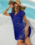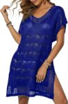 Women Swimsuit Crochet Swim Cover Up Summer V Neck Bathing Suit Beach Cover Up Swimwear Knit 2025 Beach Dress(Royal Blue,M)