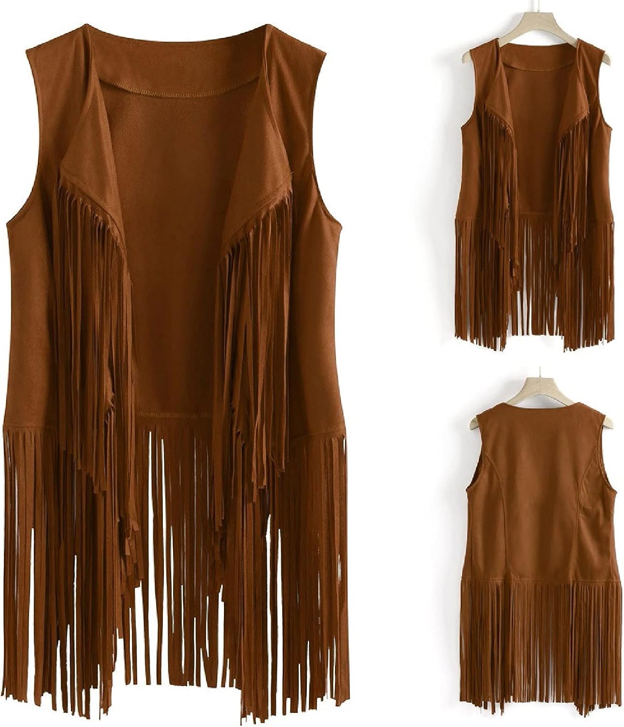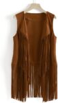 Women Tassels Sleeveless Vest Cardigan Fringe Waistcoat Jacket 70s Hippie Faux Suede Outwear Tops Autumn Winter