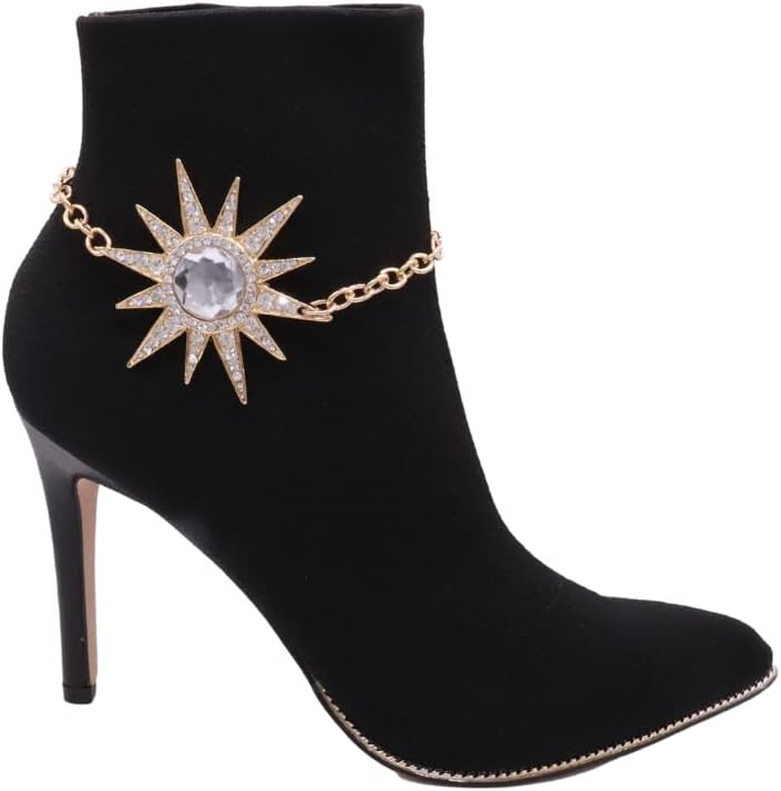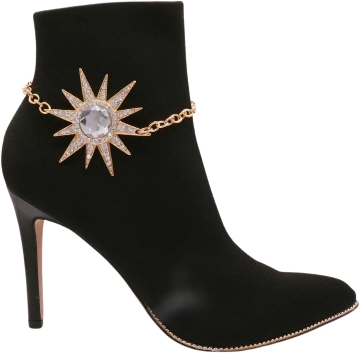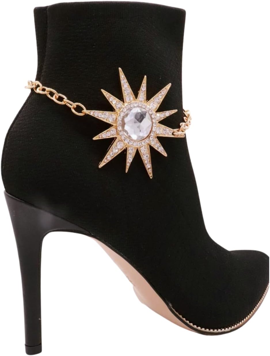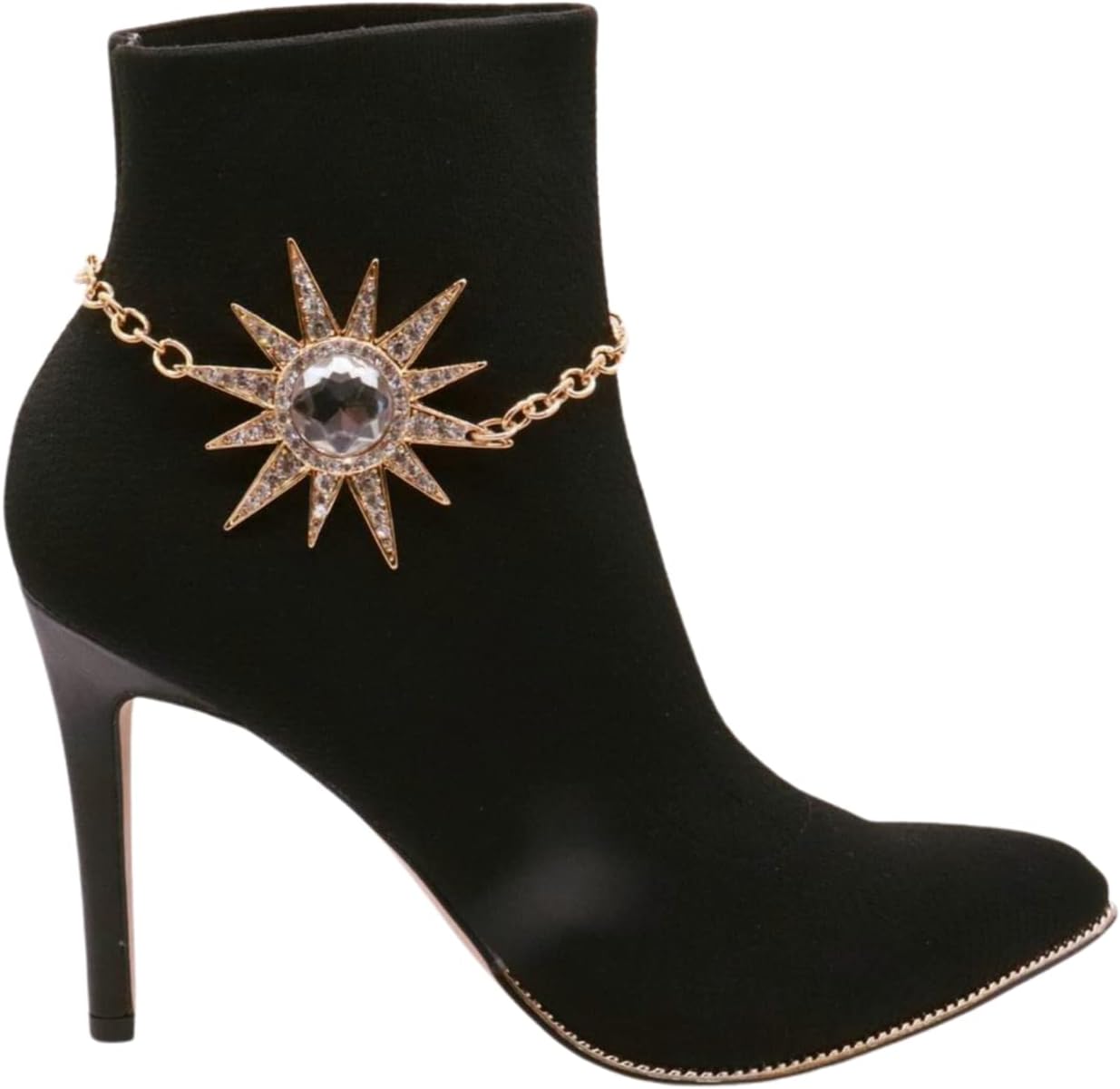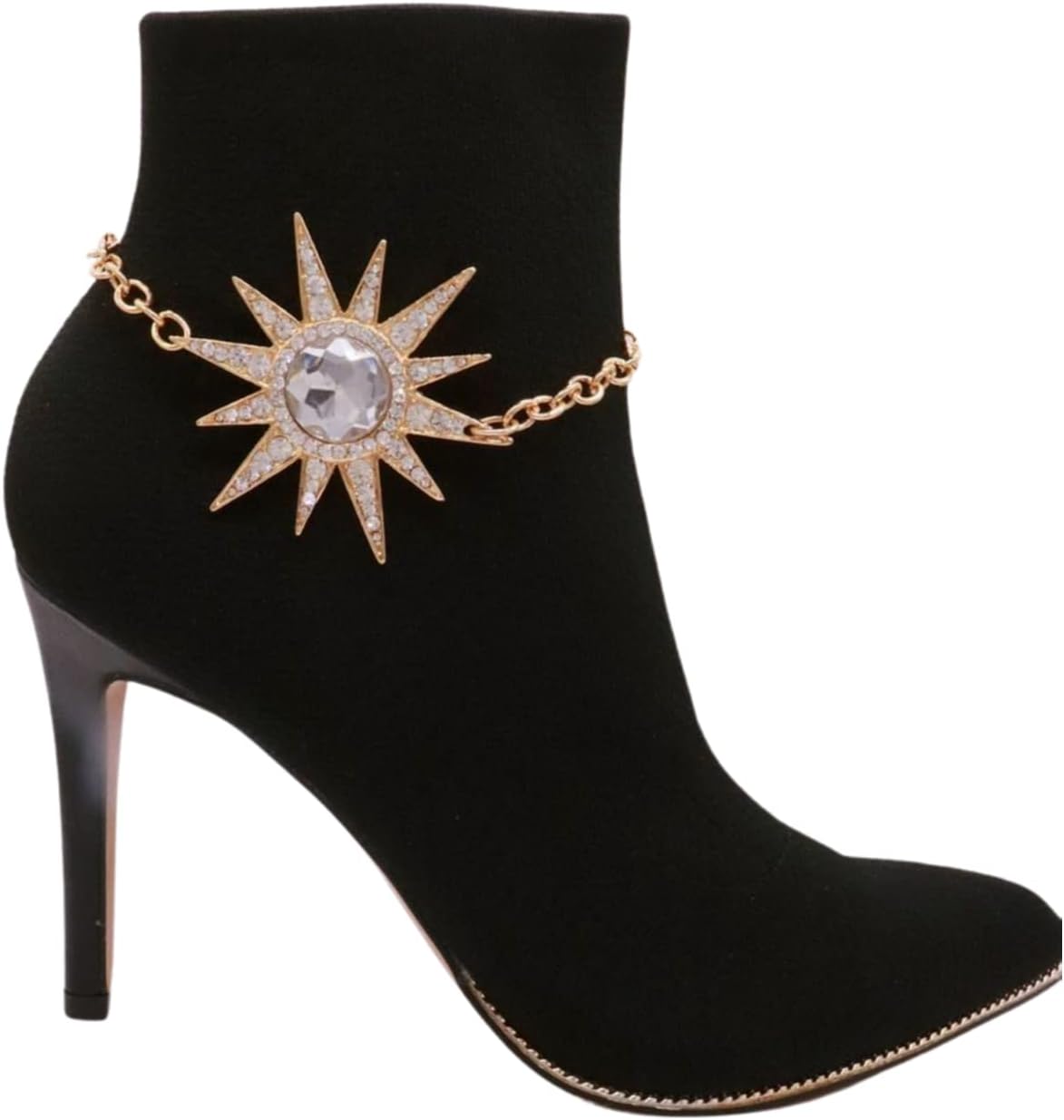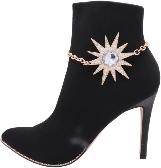 Women Western Fashion Gold Metal Boot Chain Bracelet Shoe Anklet Sun Shiny Star Charm Flower