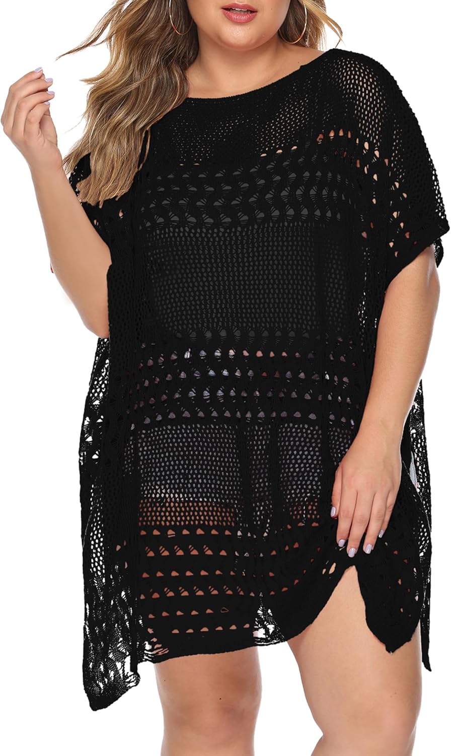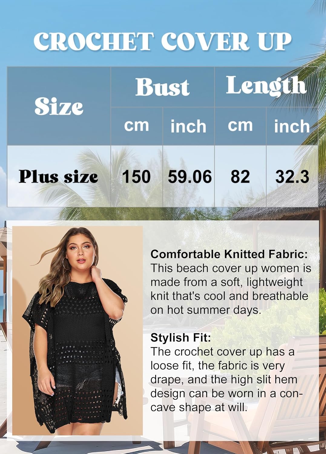 Womens Beach Cover Up Hollow Out, Plus Size Swimsuit Coverup Crochet Bathing Suit Cover ups Bikini Summer Beachwear Dress