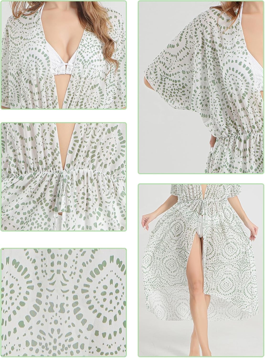Womens Beach Cover Up Long Kimono Swimsuit Coverup for Women Open Front Drawstring Bathing Suit Cardigan Cover Ups
