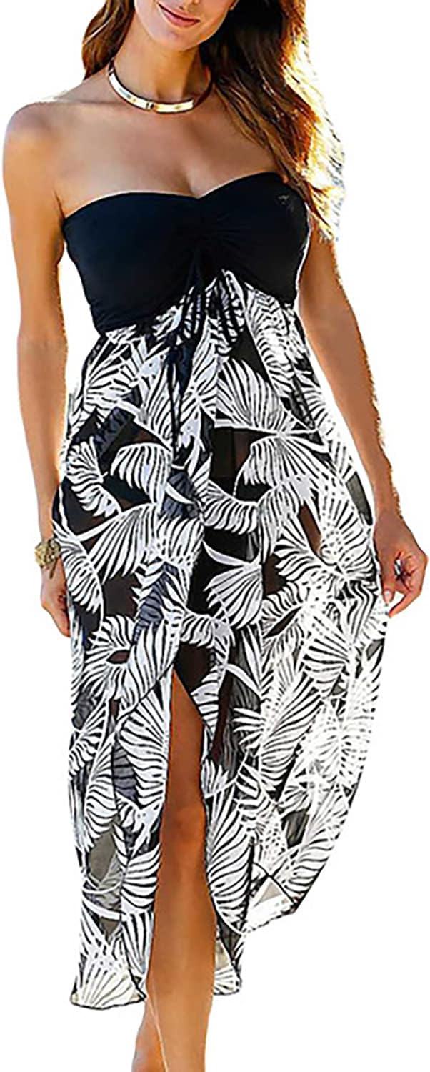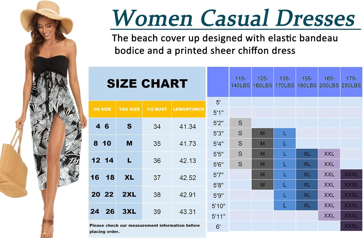 Women’s Beach Dress Summer Maxi Sundress Strapless Hawaiian Cover Ups Asymmetrical Wrap Dresses