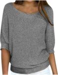 Women’s Casual Fall Sweater Crew Neck Half Sleeve Sweaters Winter Lightweight Soft Drop Shoulder Pullover Tops