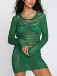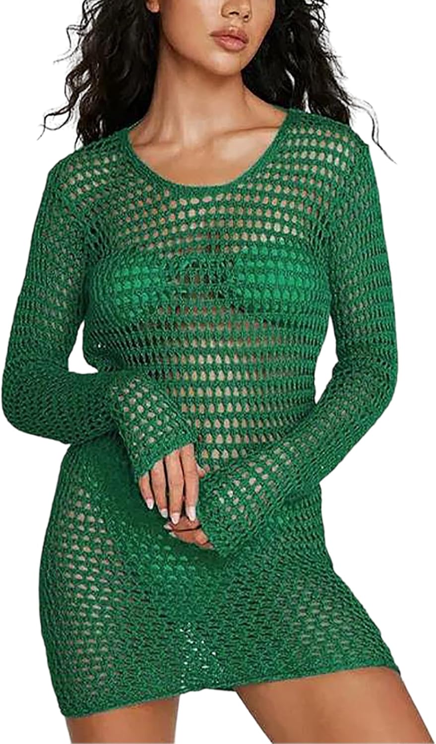 Women’s Crochet Cover Up Long Sleeve Hollow Out Bikini Swimsuit Beach Cover Up Swimwear