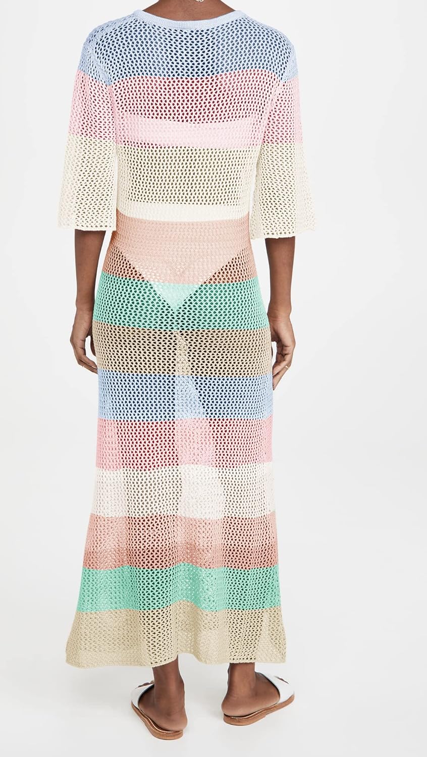 Women’s Crochet Cover Ups for Bikini Swimsuit Half Sleeve Bathing Suit Rainbow Swimwear Long Beach Dresses