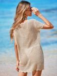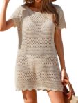 Womens Crochet Knit Swimsuit Coverup Beach Dress Summer 2025 Boat Neck Cap Sleeve Wave Trim Bathing Suit Cover Up