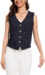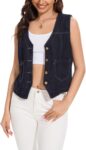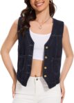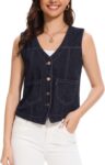 Denim Vest for Women Casual V Neck Button Down Sleeveless Jean Jacket