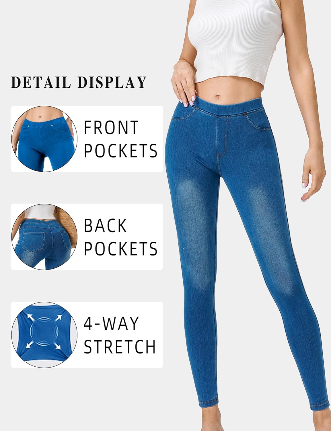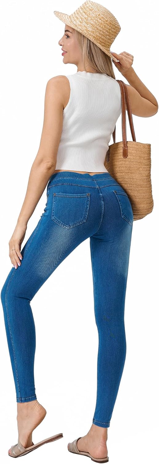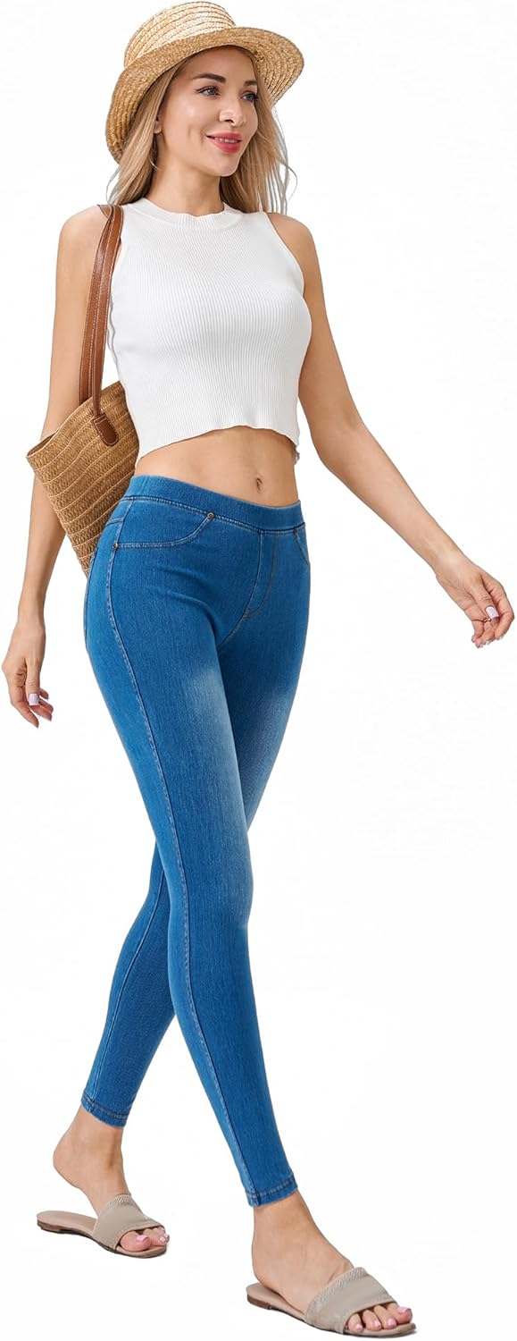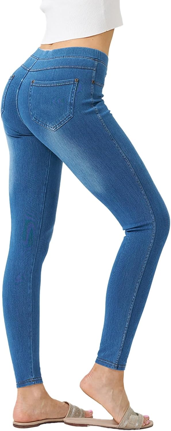 Women’s Denim Jeggings Stretch Pull-On Jegging Casual Pants with Pockets