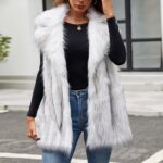 Women’s Faux Fur Vest Fuzzy Fleece Vests Jacket Lapel Sleeveless Jackets Furry Open Front Cardigan Trendy Winter Coats