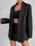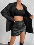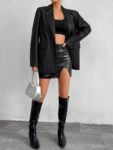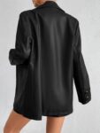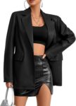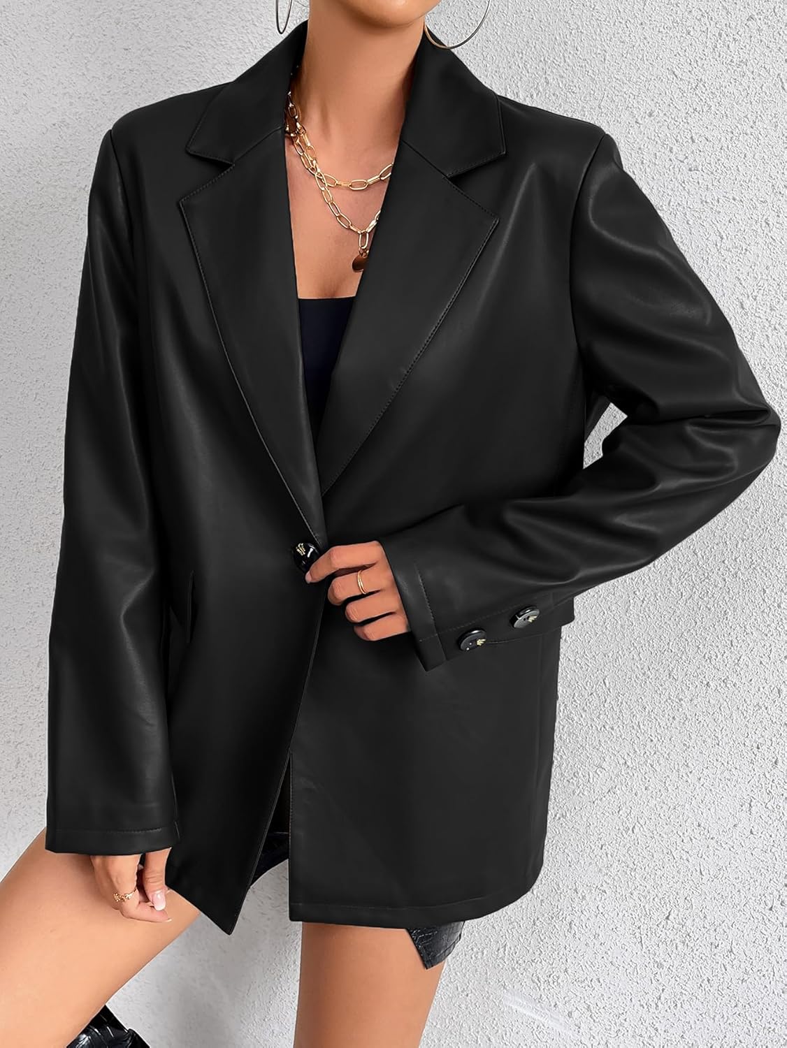 Womens Faux Leather Blazer Jacket Moto Biker Coat Long Sleeves Button Fashion Coats