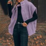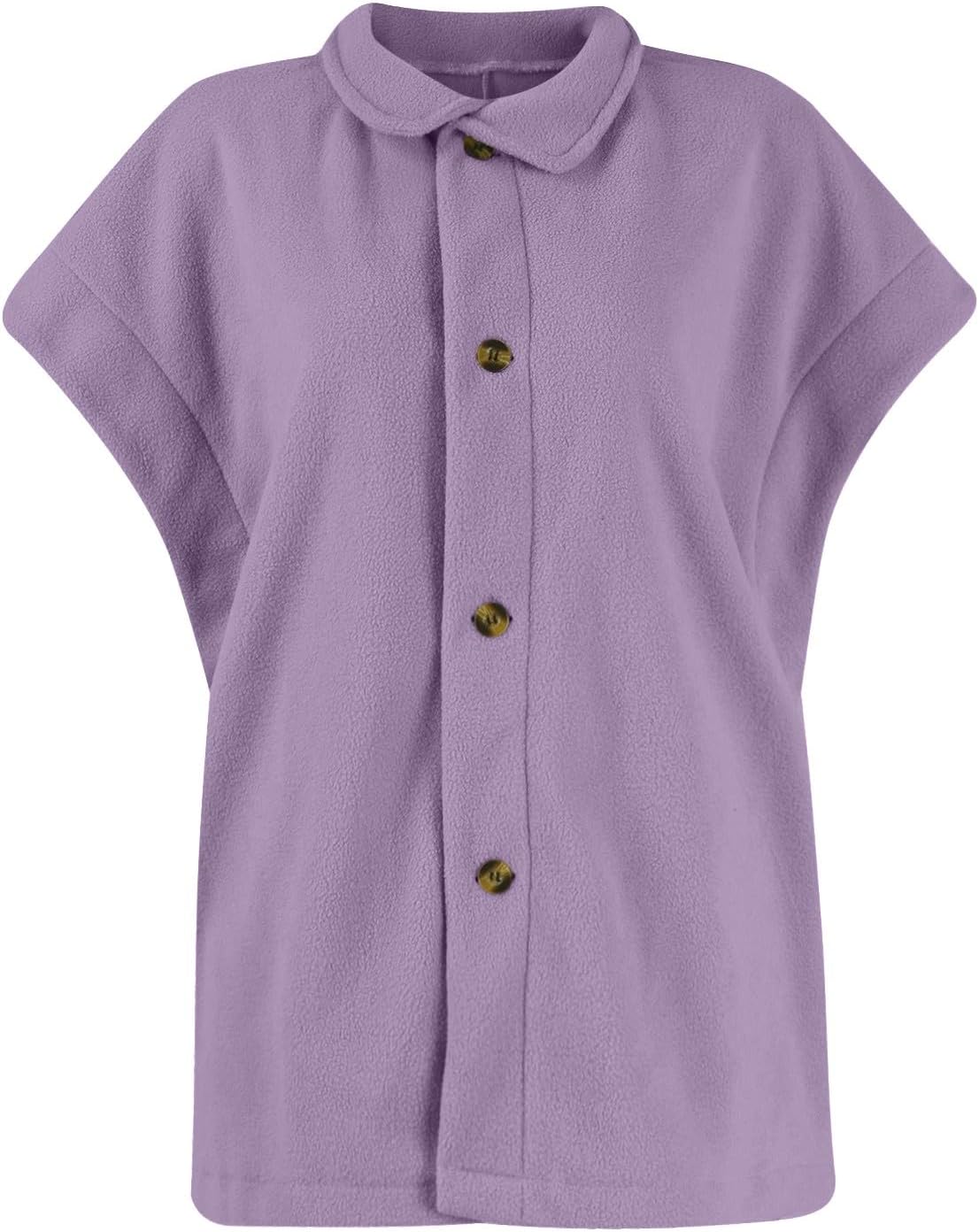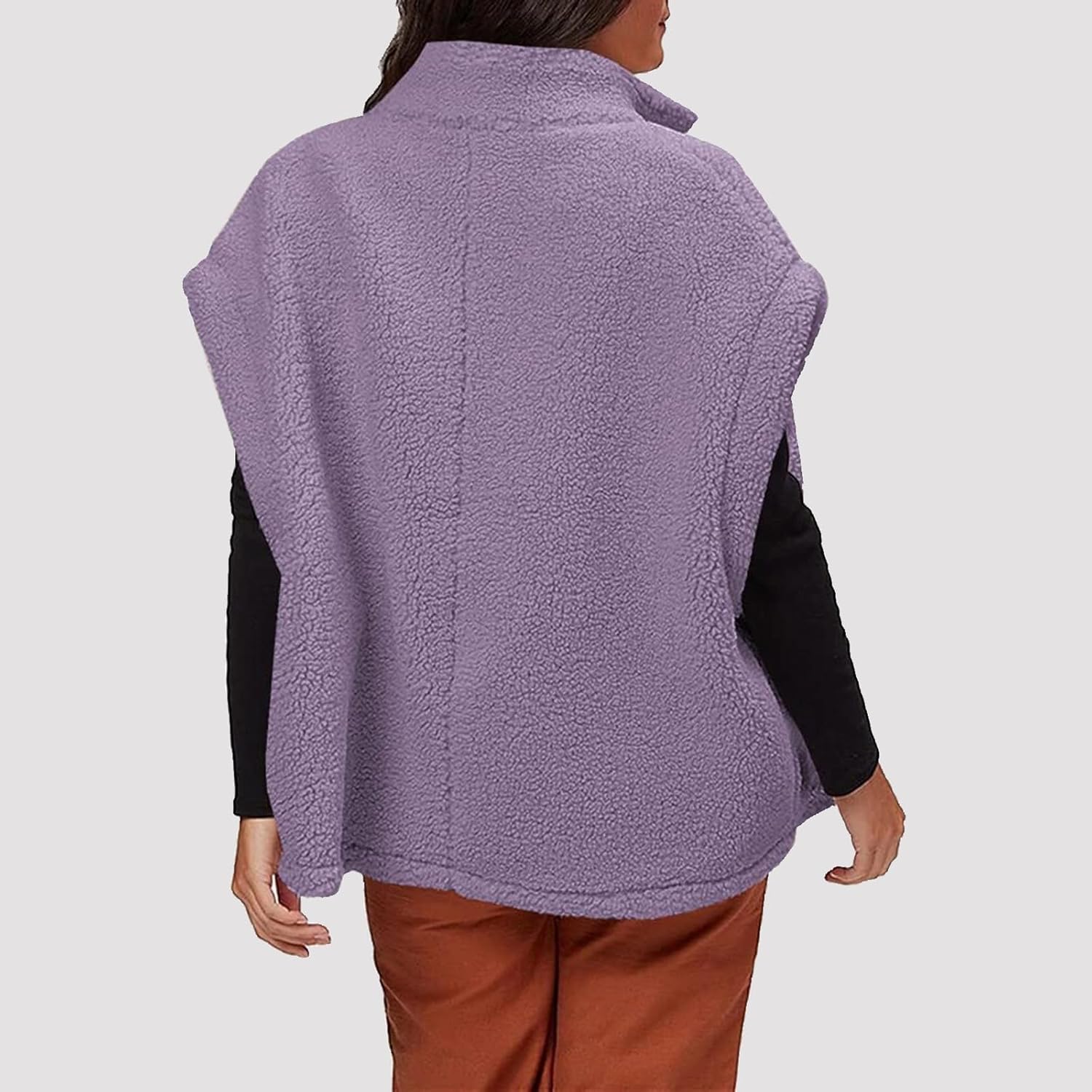 Womens Fleece Vest Oversized Stand Collar Button Down Sherpa Vest Sleeveless Fuzzy Jackets Warm Plush Outerwear