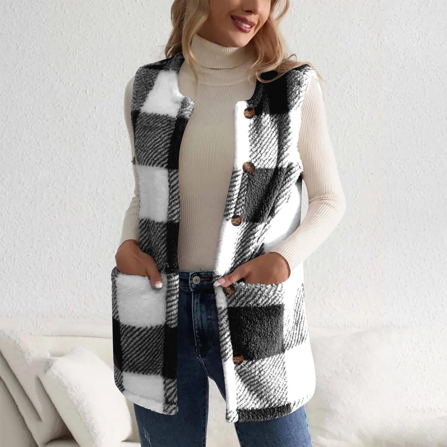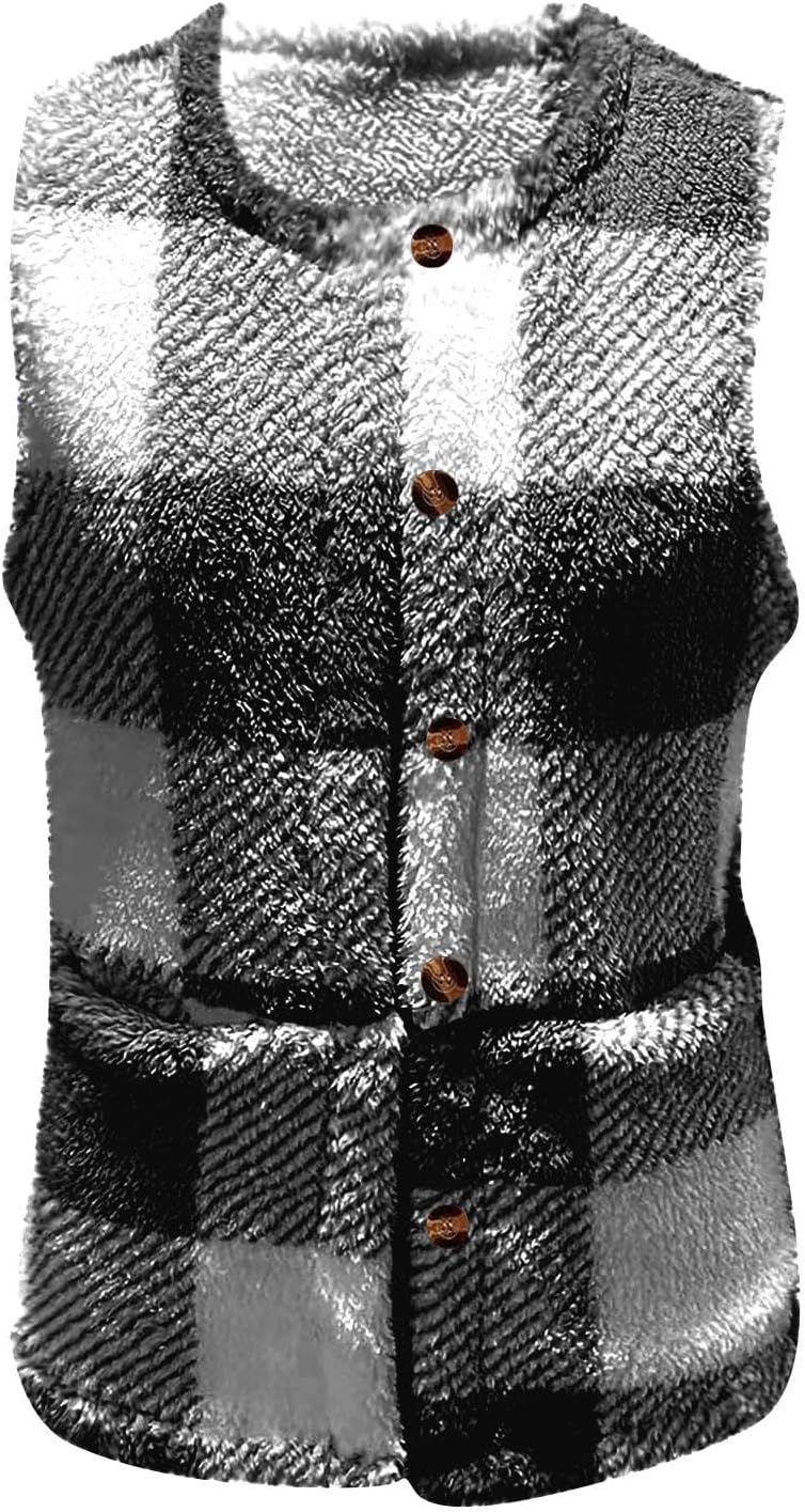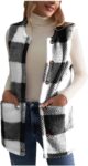 Womens Fuzzy Fleece Vest Sleeveless Sherpa Jacket with Pockets Warm Fluffy Button Down Casual Outerwear Coats