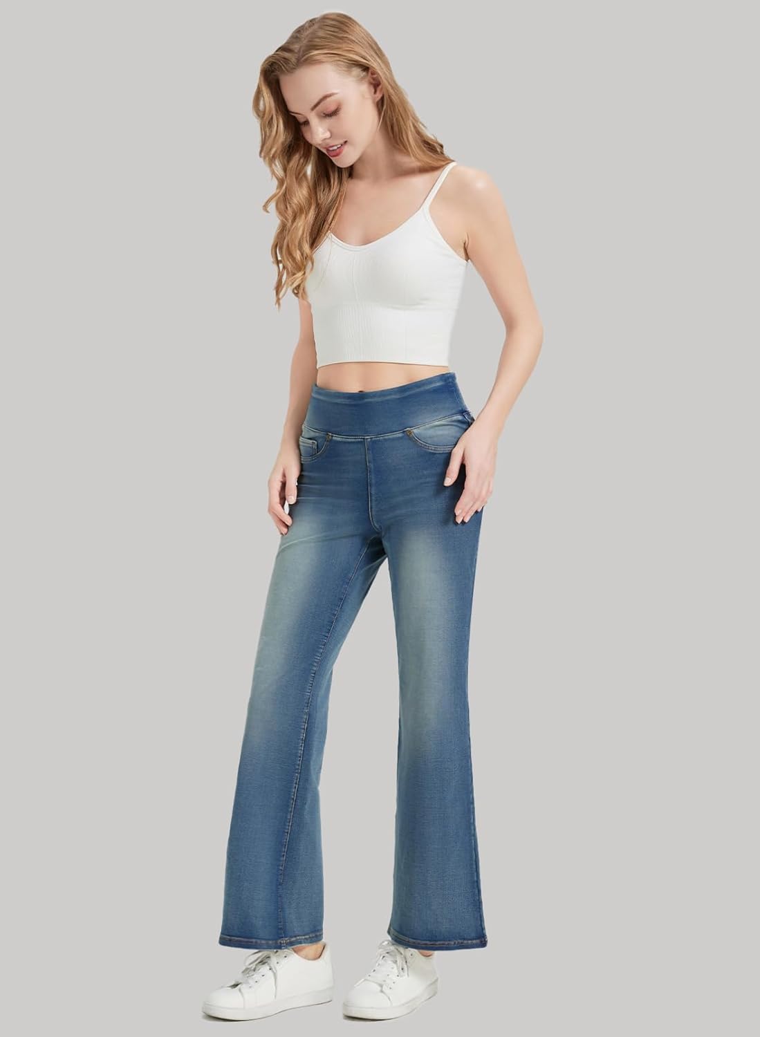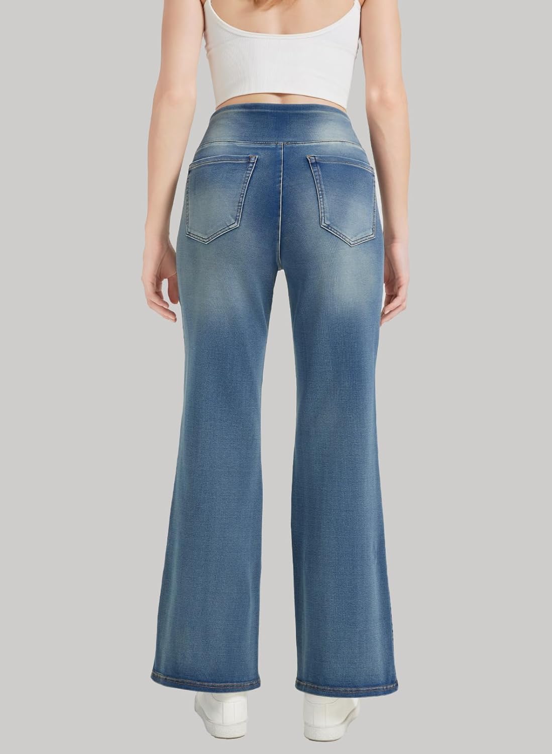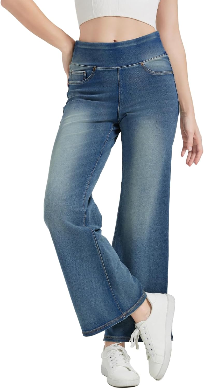 Women’s High Waisted Bell Bottom Pull On Jeans Tummy Control Stretchy Baggy Casual Jean Leggings