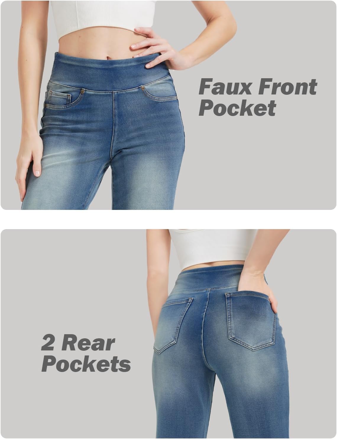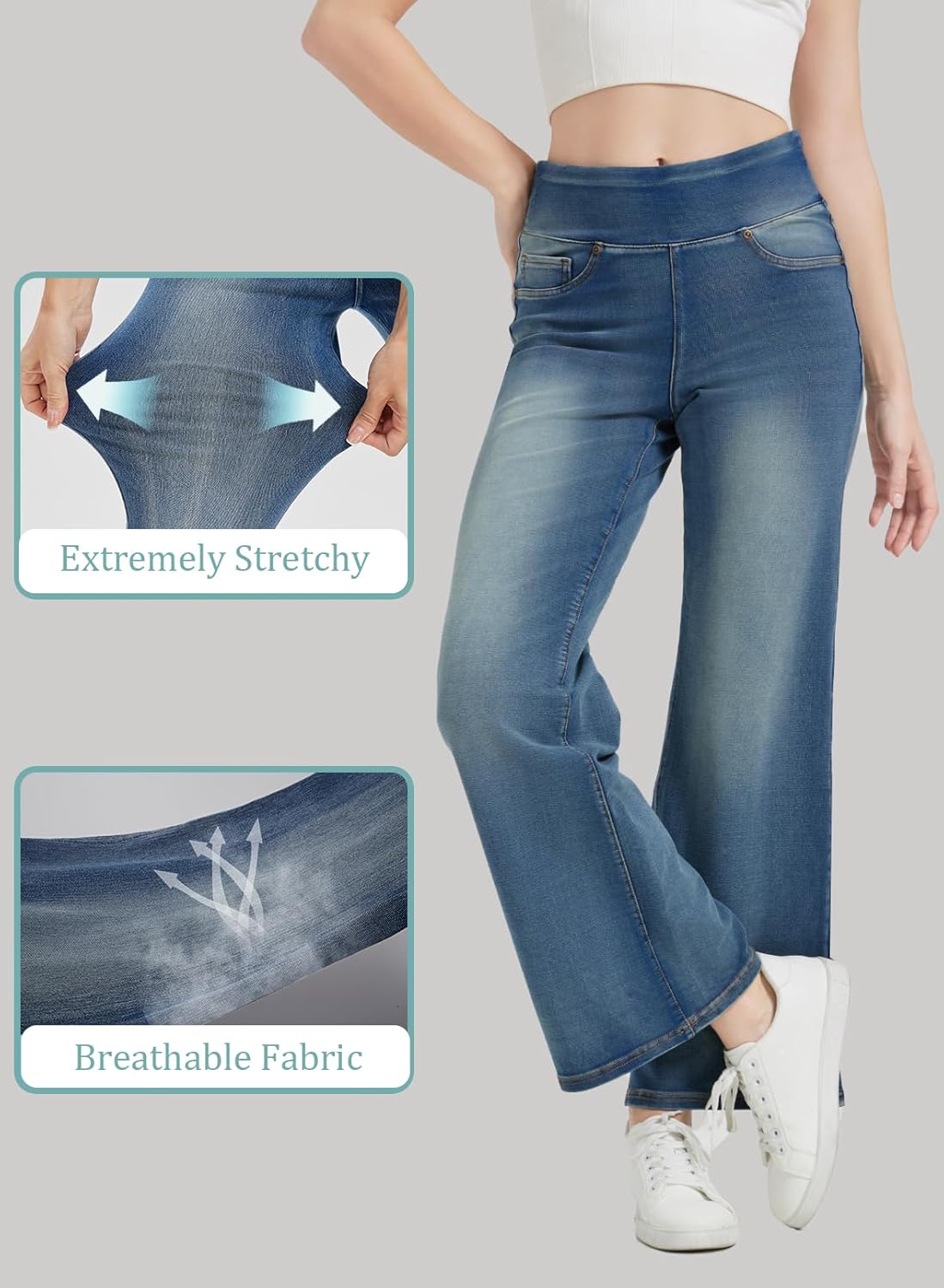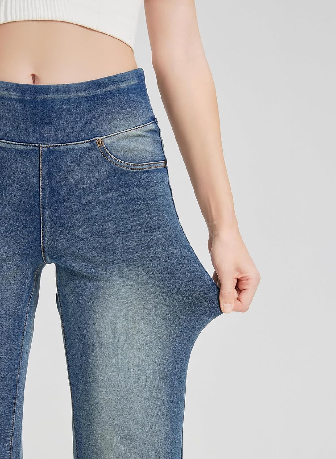 Women’s High Waisted Bell Bottom Pull On Jeans Tummy Control Stretchy Baggy Casual Jean Leggings