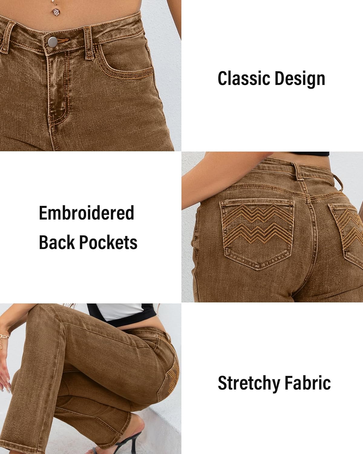 Women’s Jeans 90s Mid Rise Bootcut High Stretch Boot Cut Denim Pants Pantalones De Mujer