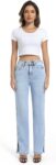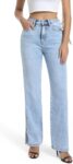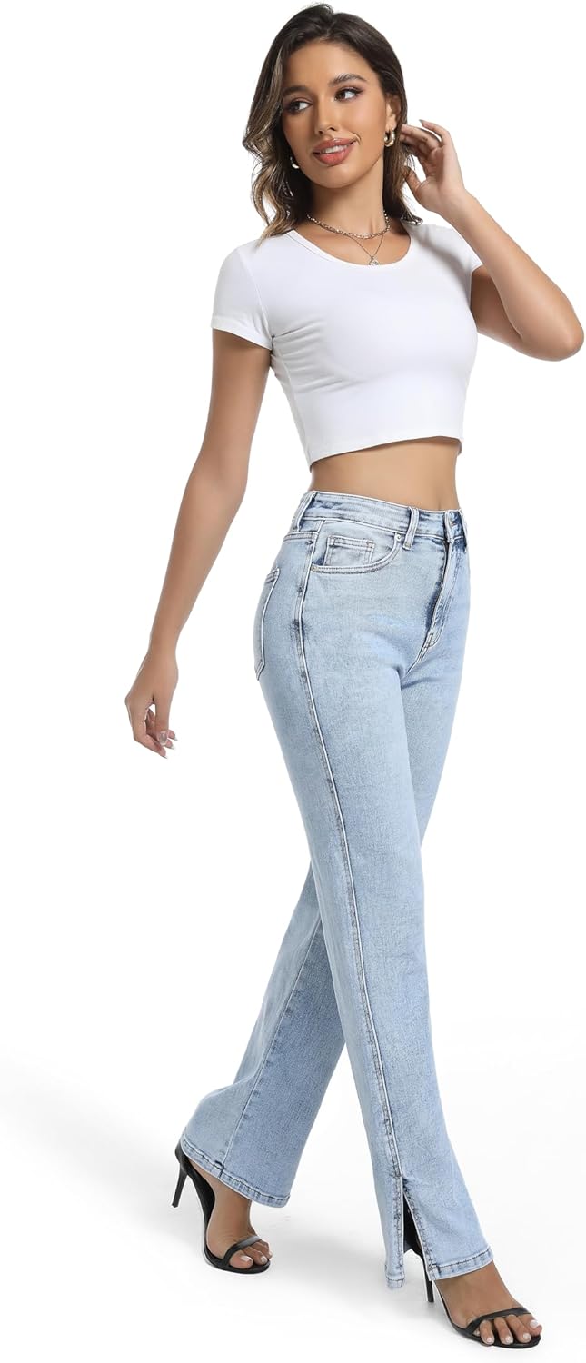 Womens Jeans High Waisted Stretchy Straight Leg Split Hem Jeans for Women Trendy Classic Denim