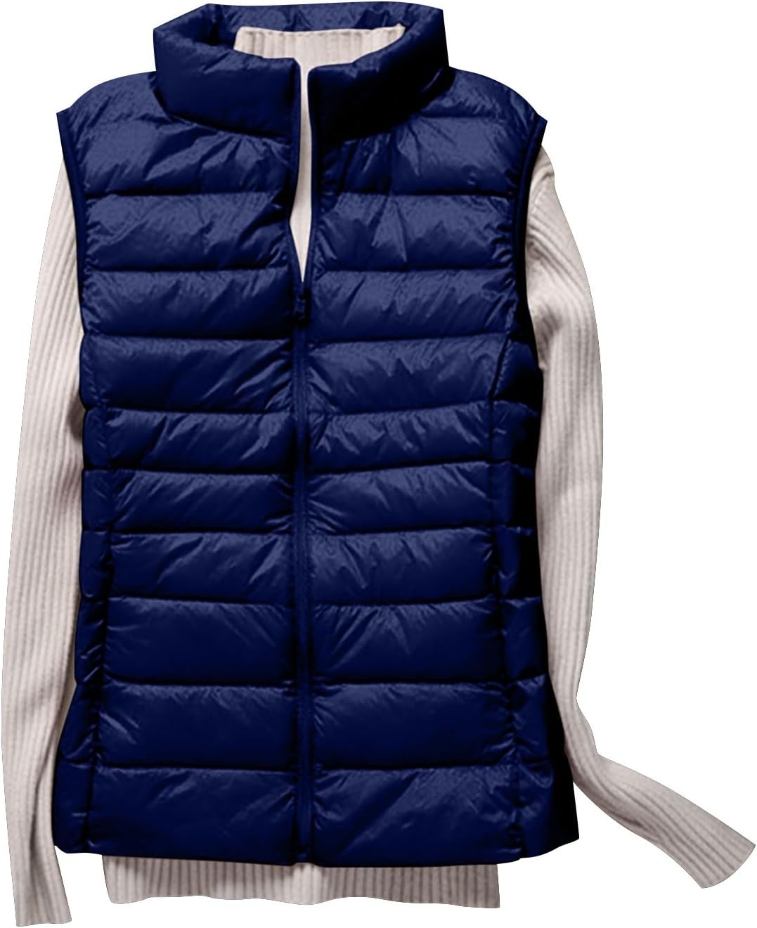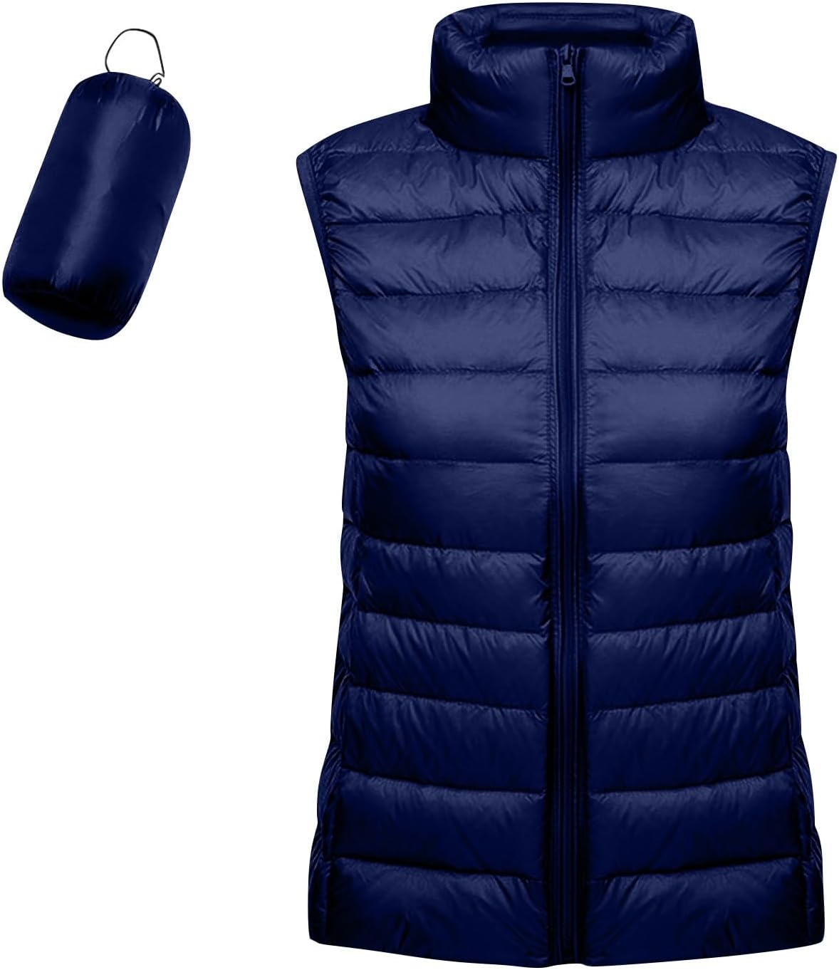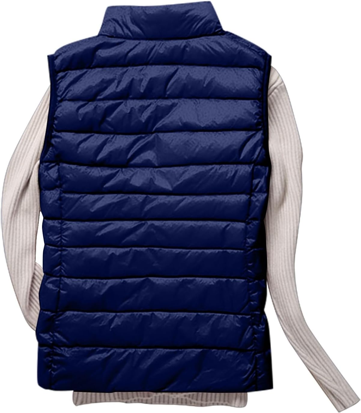Womens Lightweight Puffer Vest Packable Warm Winter Sleeveless Jacket Stand Collar Water Resistant Quilted Vest
