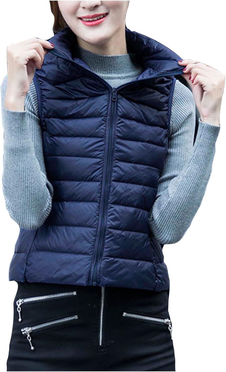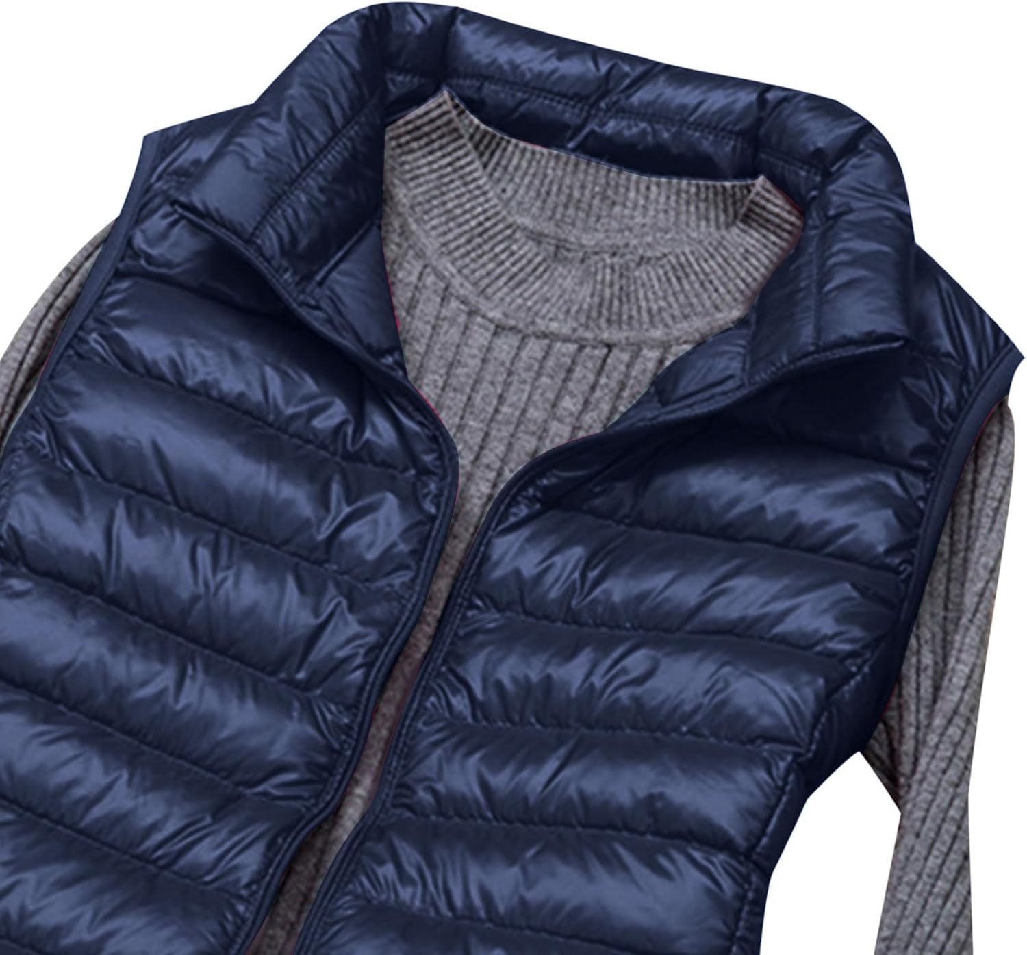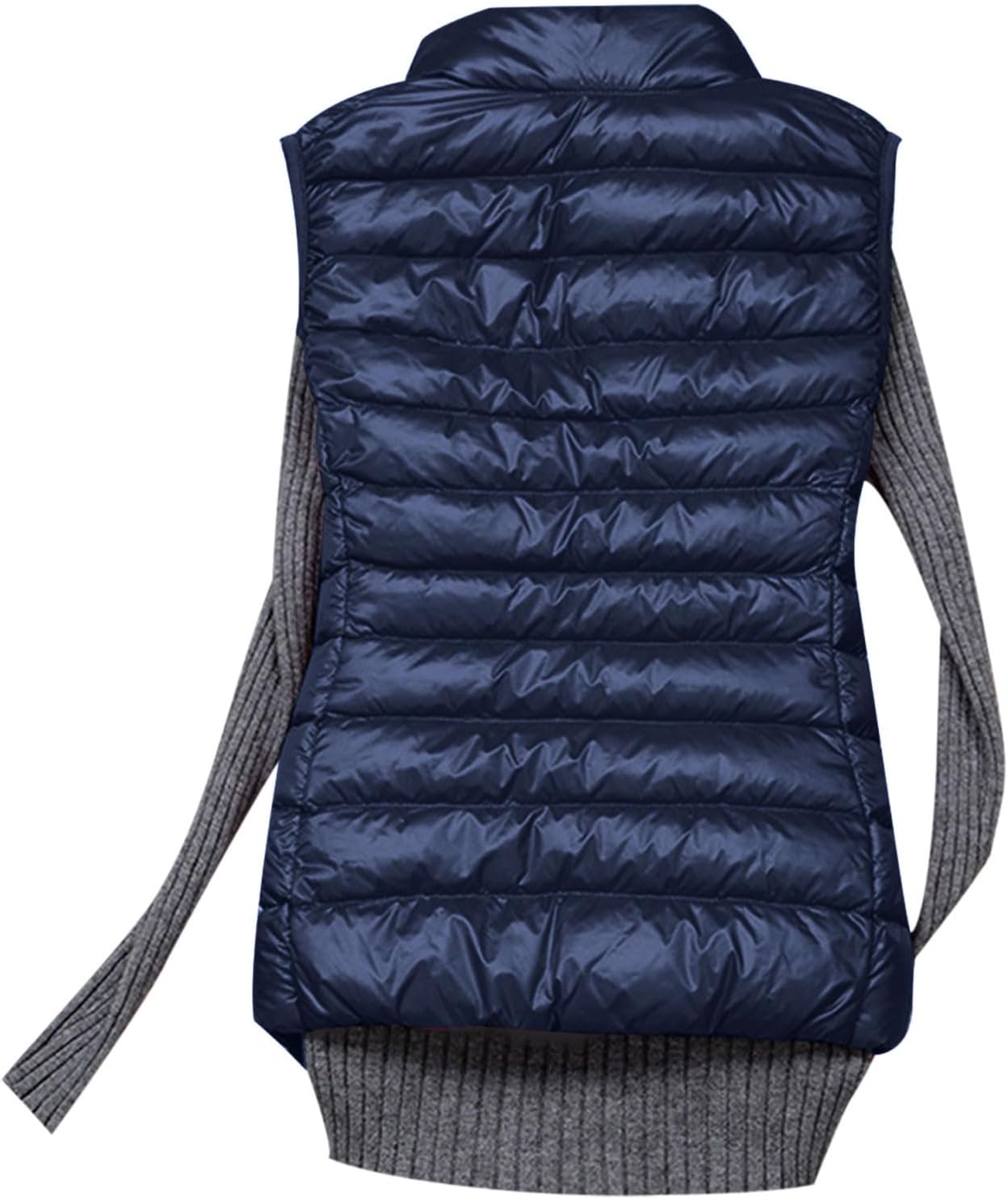 Womens Lightweight Puffer Vest Stand Collar Zip Up Sleeveless Quilted Puffy Jackets Packable Slim Fit Warm Down Coats