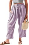 Womens Linen Wide Leg Pants Casual Loose Drawstring Summer Beach Travel Vacation Palazzo Harem Pants with Pockets