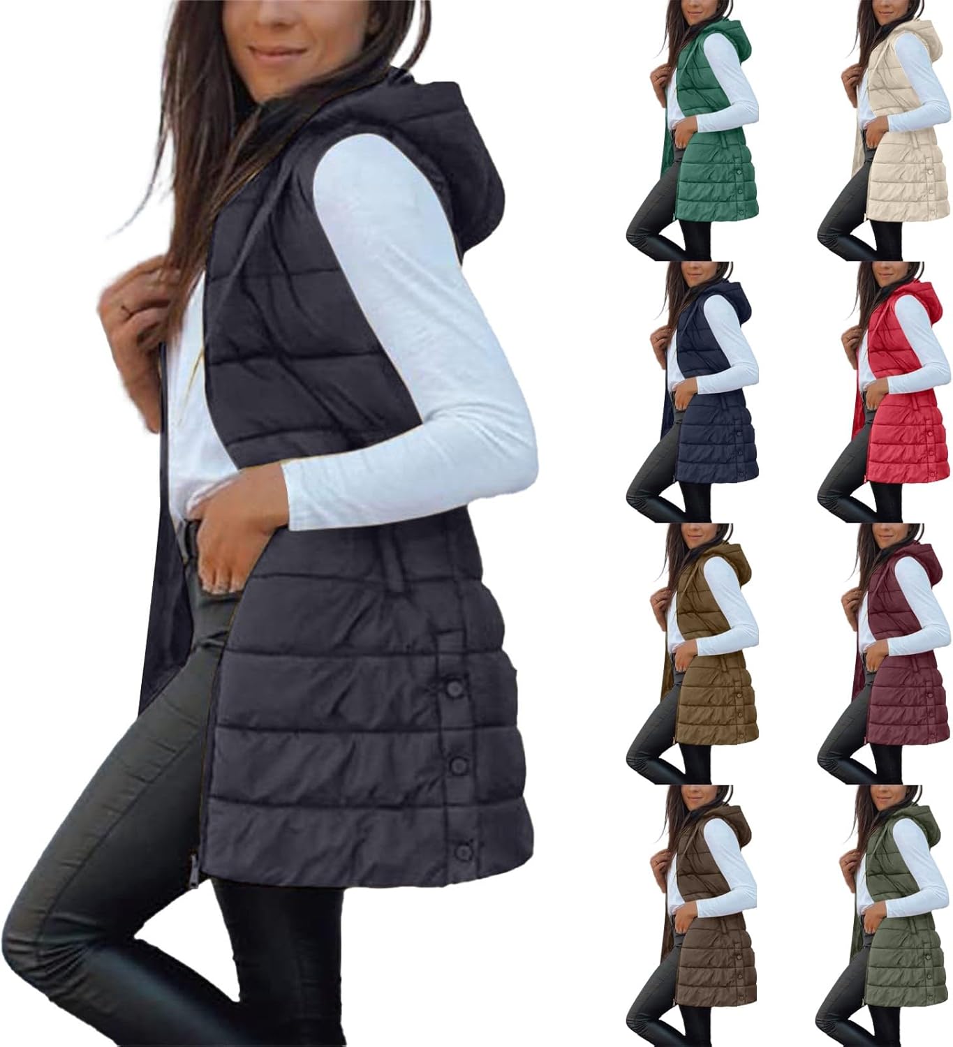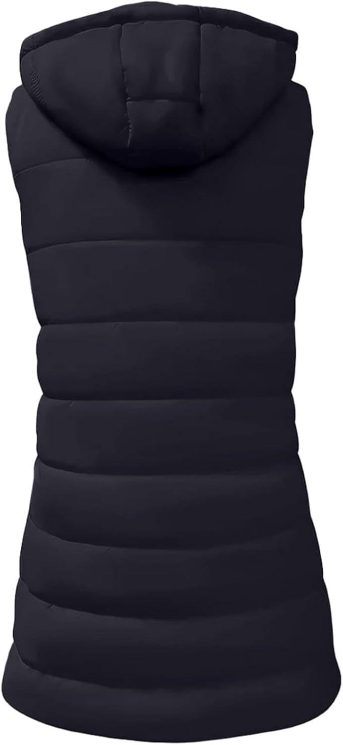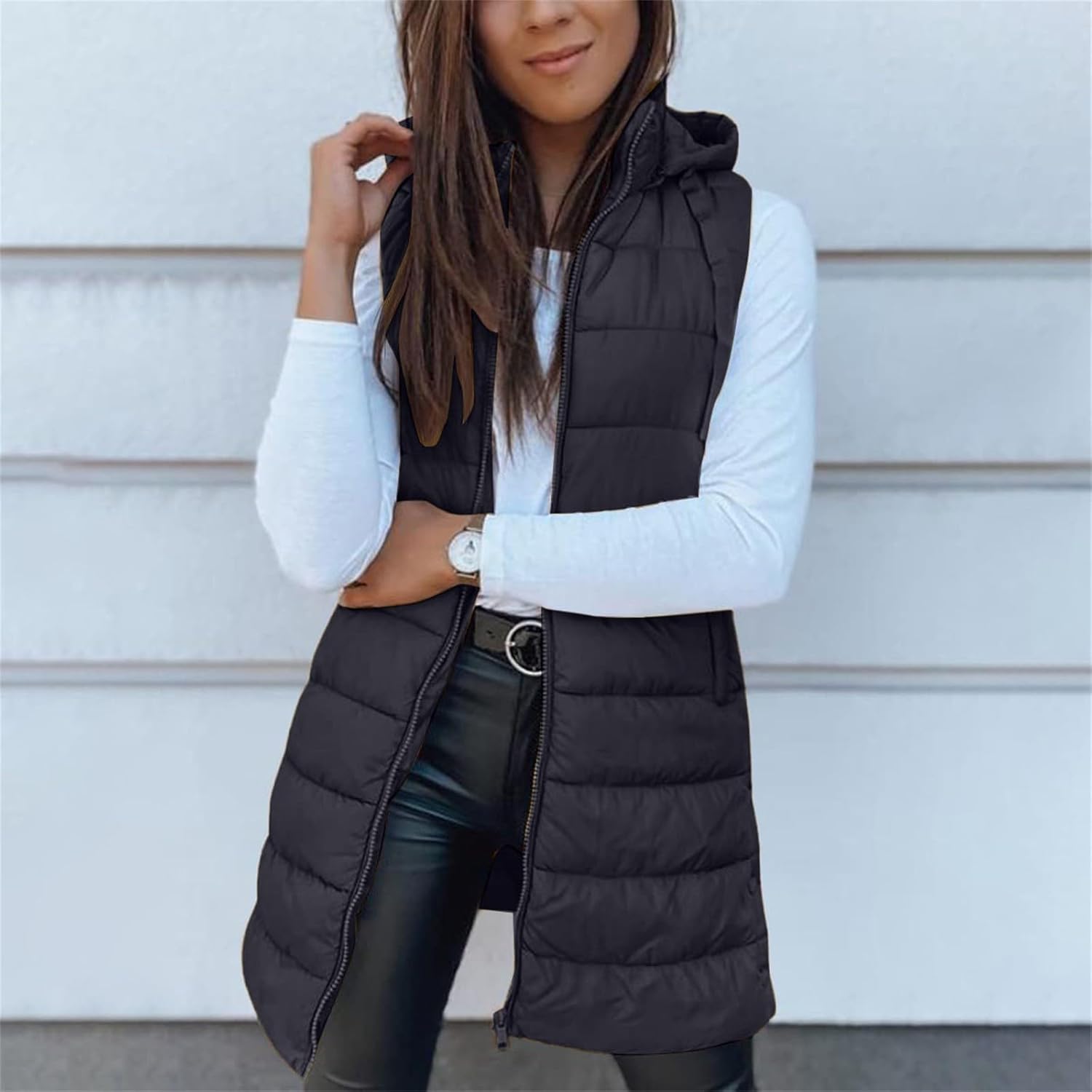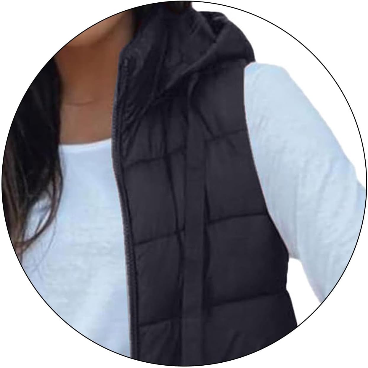 Womens Long Puffer Vest Quilted Hooded Vests Winter Coat Sleeveless Jacket Casual Zip Up Fall Jackets Outwear