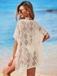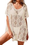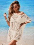Womens Oversized Crochet Beach Dresses Summer 2025 Scoop Neck Cap Sleeve Bathing Suit Cover Up Mini Dress