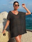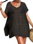 Womens Oversized Crochet Beach Dresses Summer 2025 Scoop Neck Cap Sleeve Bathing Suit Cover Up Mini Dress