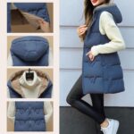 Long Puffer Vest Women Winter Warm Vests Hooded Jacket Sleeveless Quilted Zip Up Puffy Coat Outerwear With Pockets