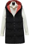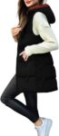 Womens Puffer Vest Long Sleeveless Quilted Winter Warm Vests Hooded Jacket Zip Up Puffy Outerwear Coat With Pockets