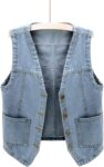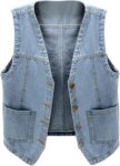 Womens Sleeveless Denim Vest V Neck Button Down Jean Waistcoat Y2K Casual Trendy Loose Fit Lightweight Jackets with Pockets