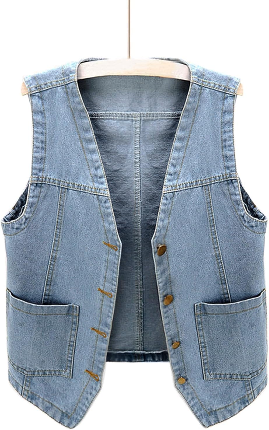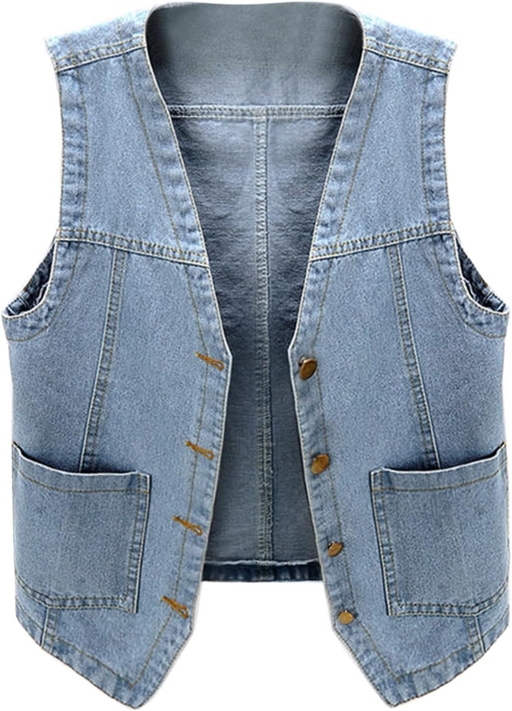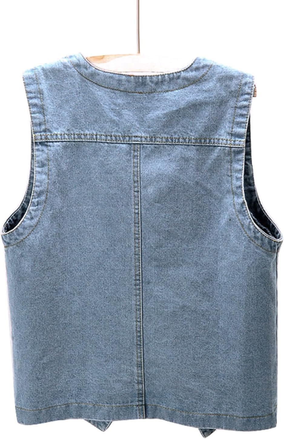 Womens Sleeveless Denim Vest V Neck Button Down Jean Waistcoat Y2K Casual Trendy Loose Fit Lightweight Jackets With Pockets
