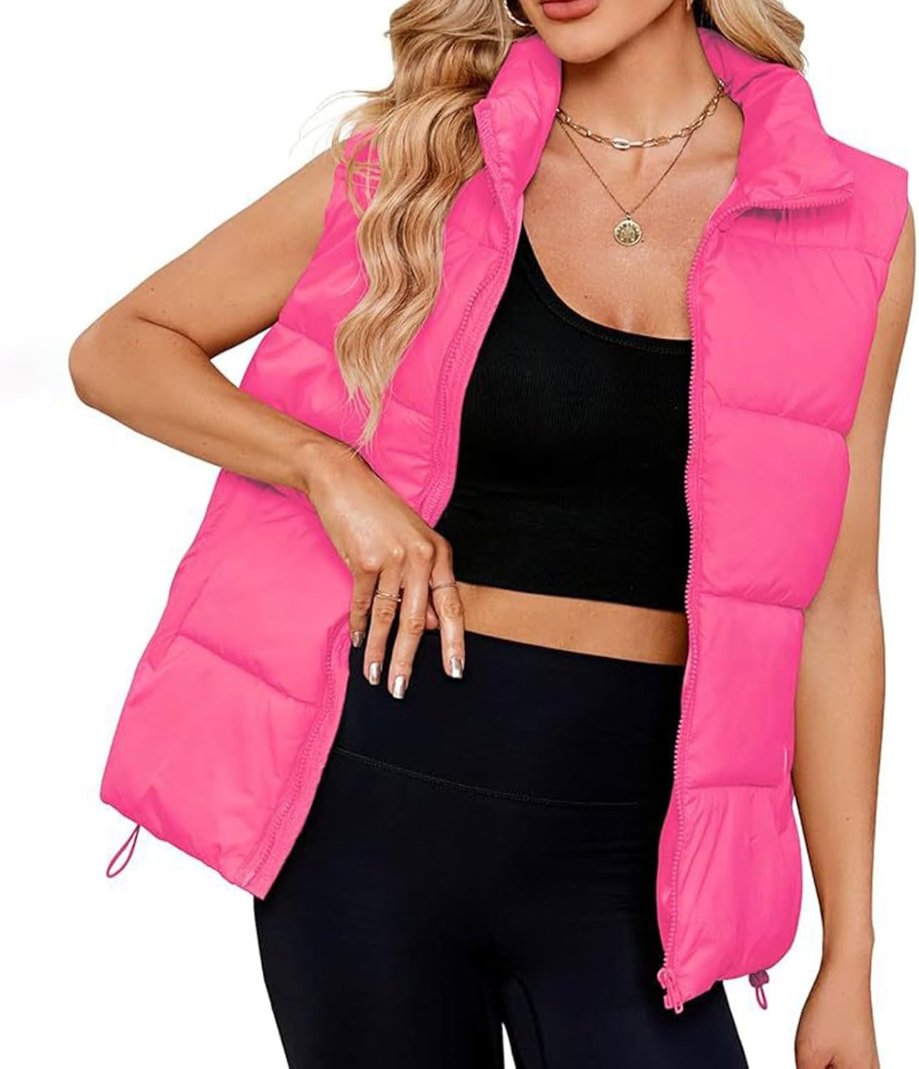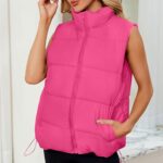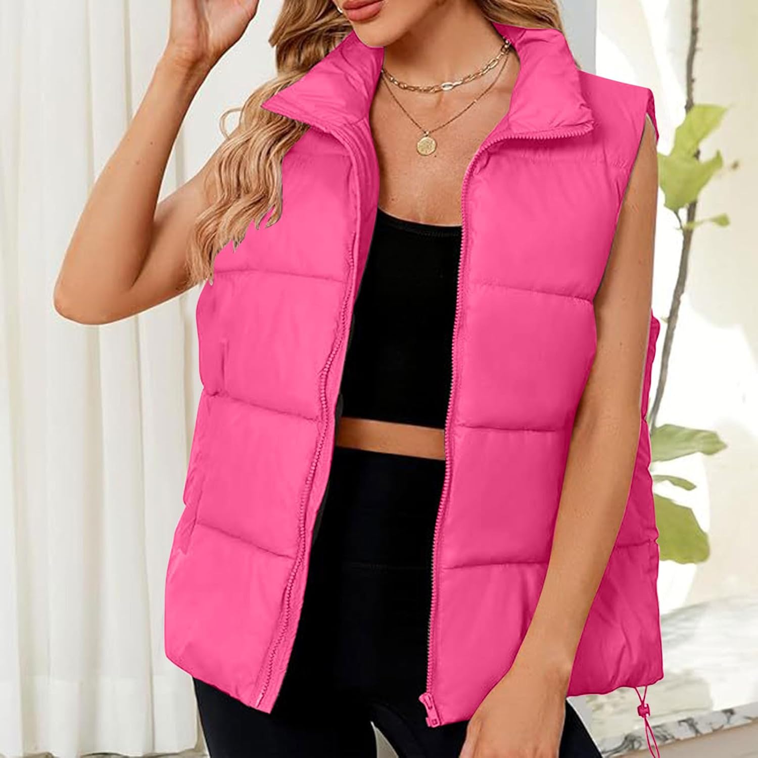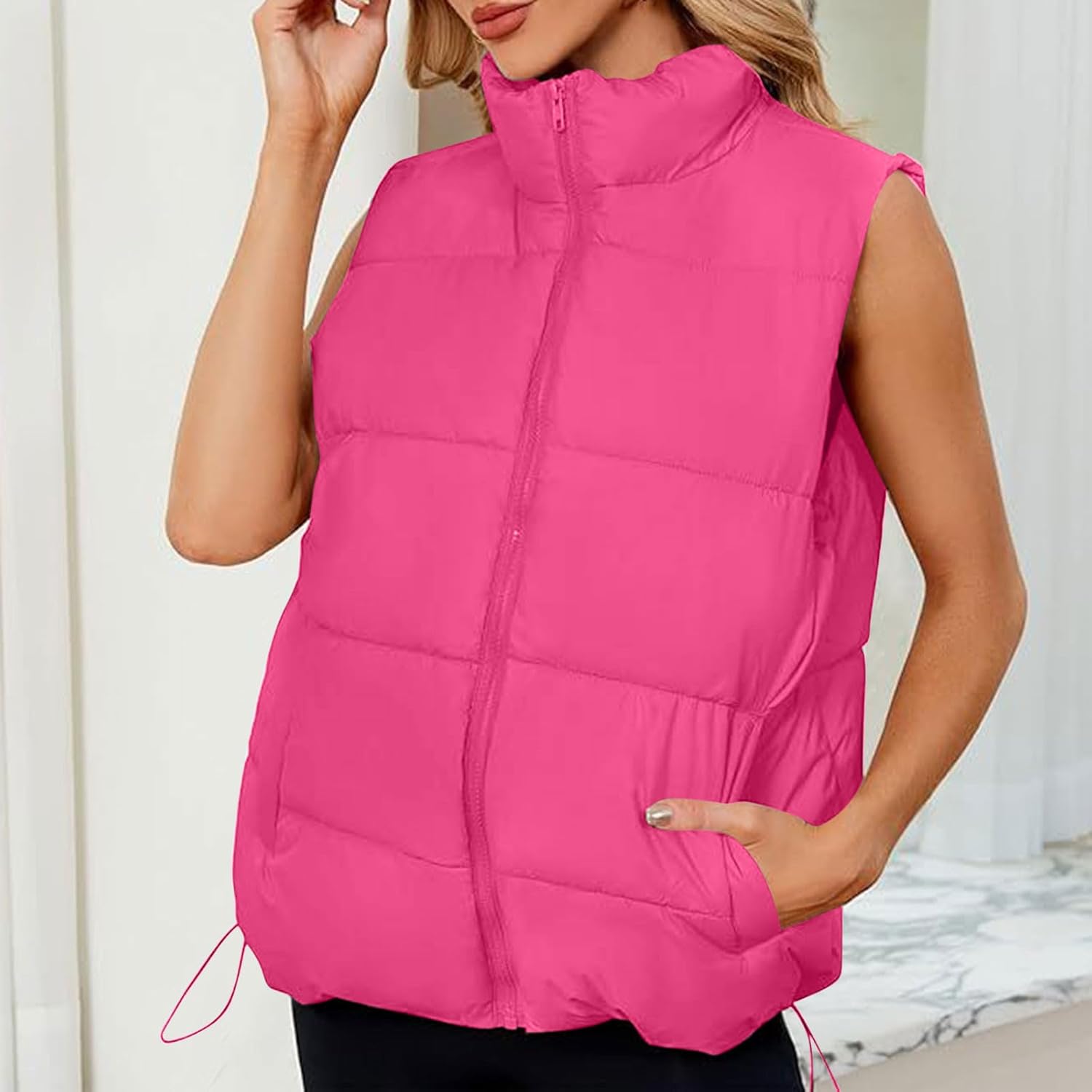 Womens Stand Collar Puffer Vest Lightweight Sleeveless Quilted Down Jackets Full Zip Padded Warm Coat Outwear Pockets