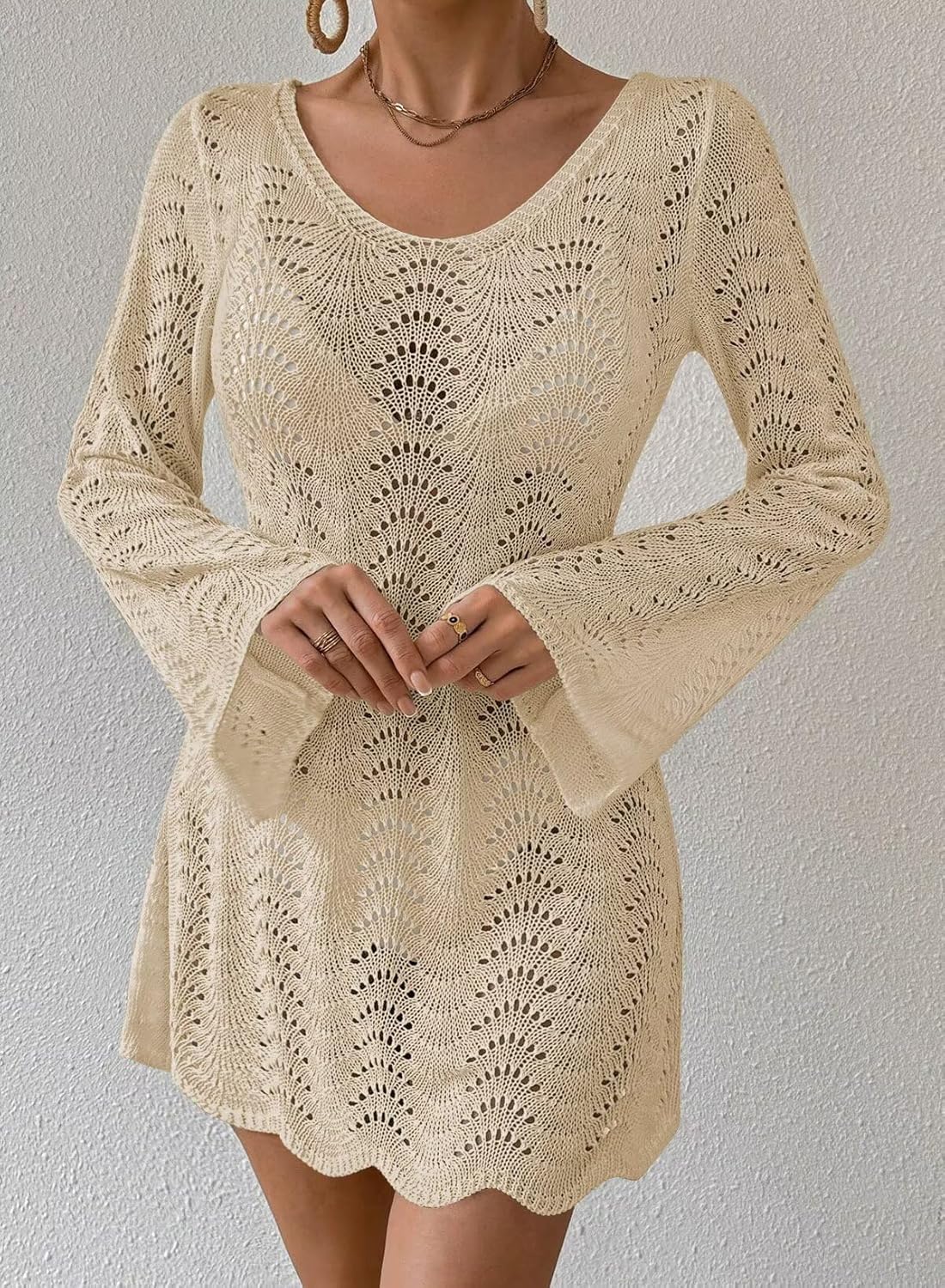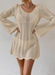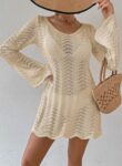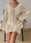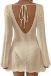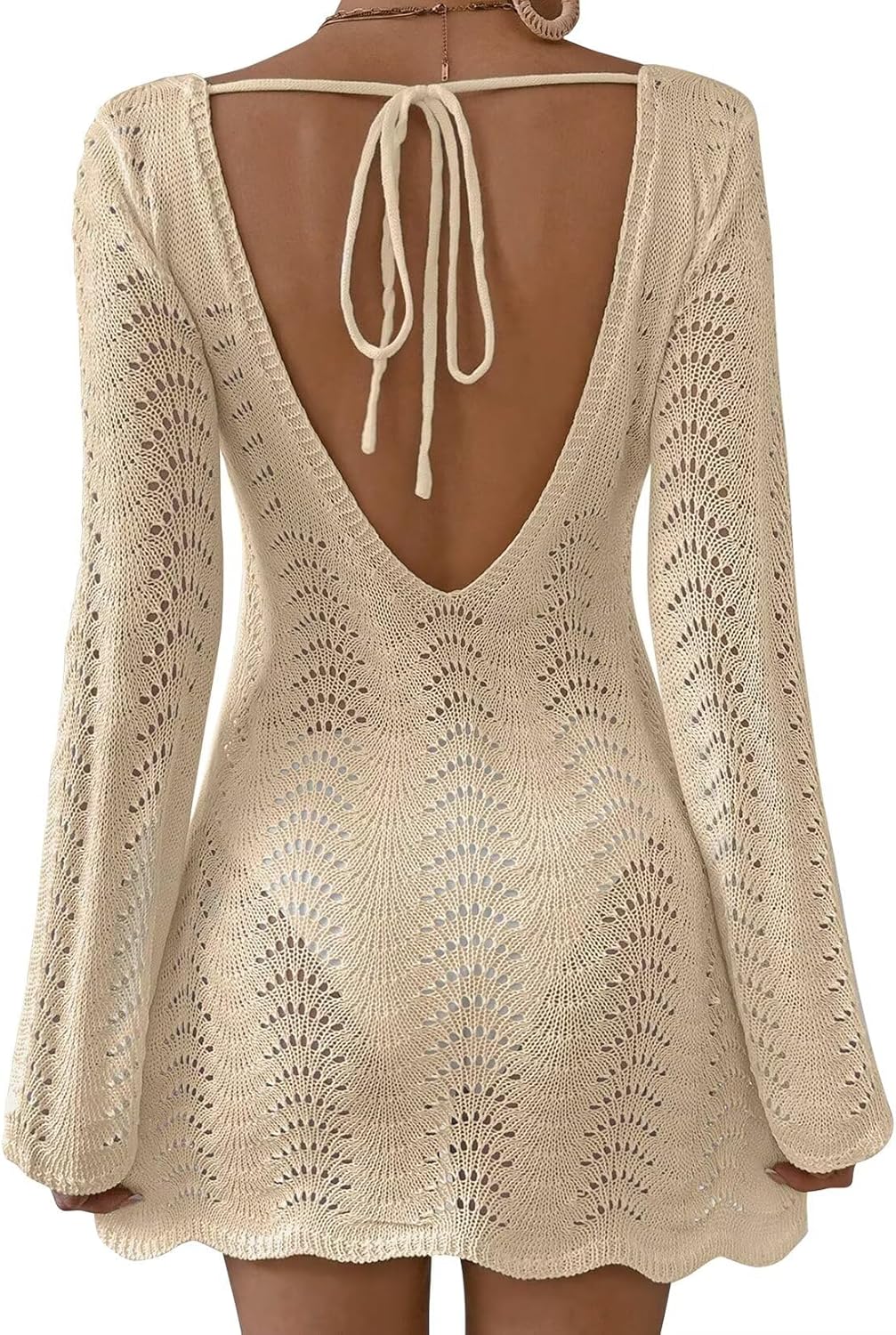 Womens Swimsuit Cover Up Long Sleeve Crochet Bathing Suit Mesh Backless Cover Ups Summer Beach Vacation Outfits 2025