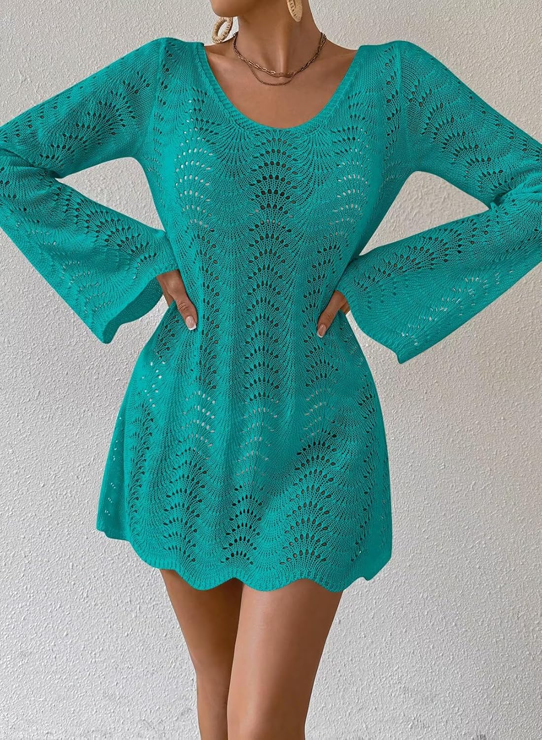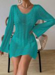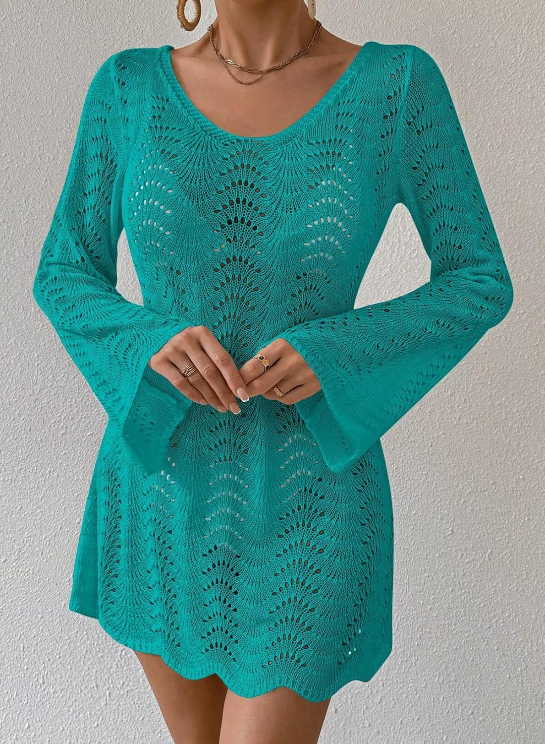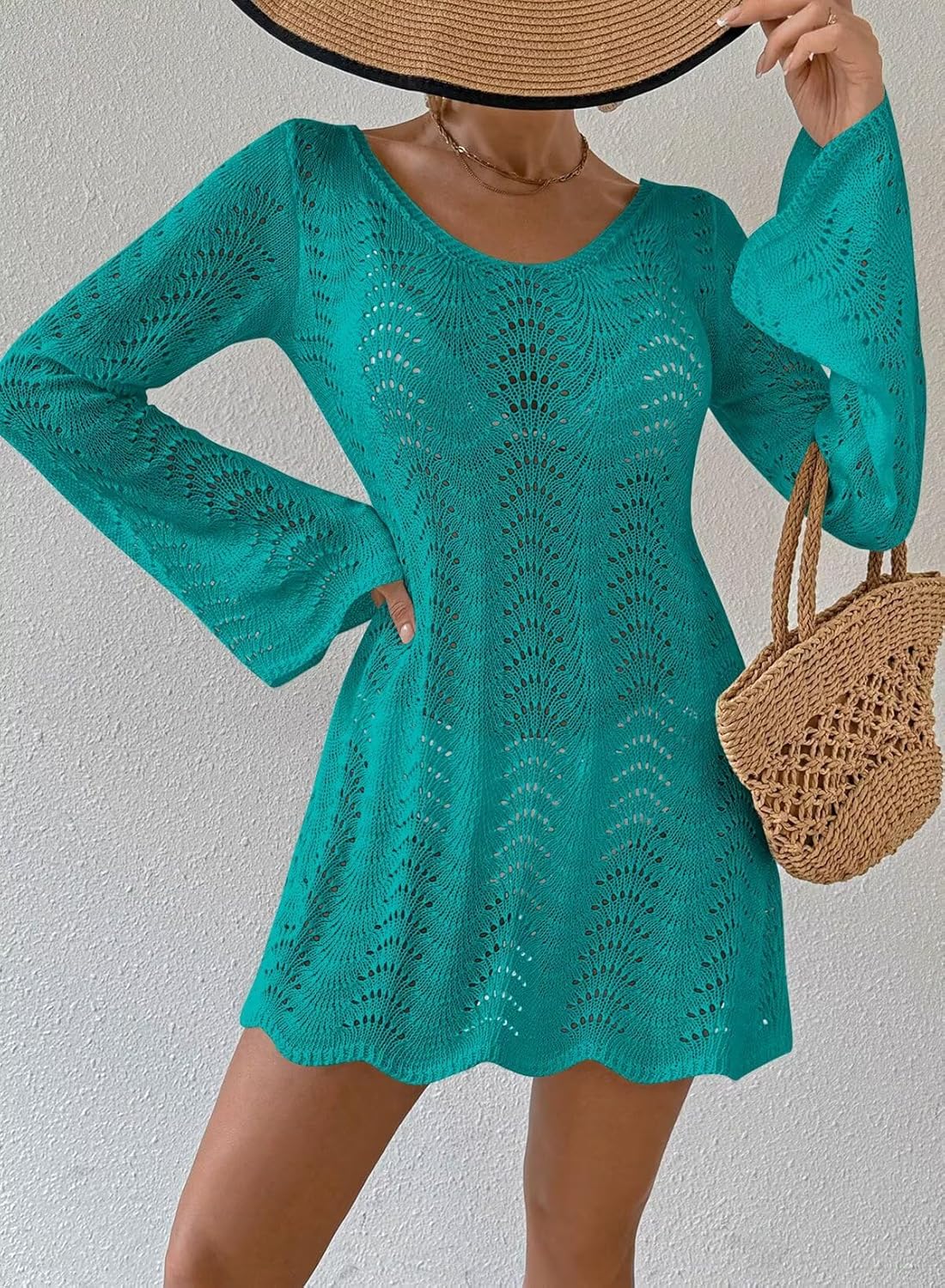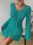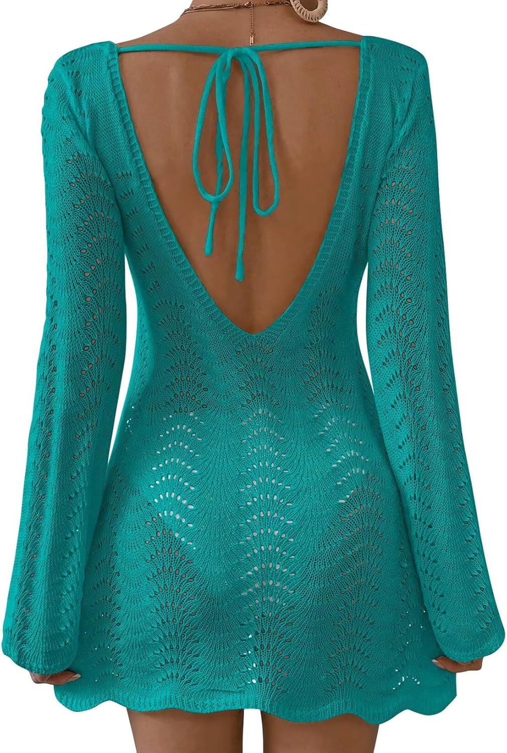 Womens Swimsuit Cover Up Long Sleeve Crochet Bathing Suit Mesh Backless Cover Ups Summer Beach Vacation Outfits 2025