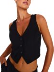 Women’s V Neck Button Down Crop Vest Top Business Sleeveless Waistcoat Vintage Grunge Suit Vest Y2K Streetwear