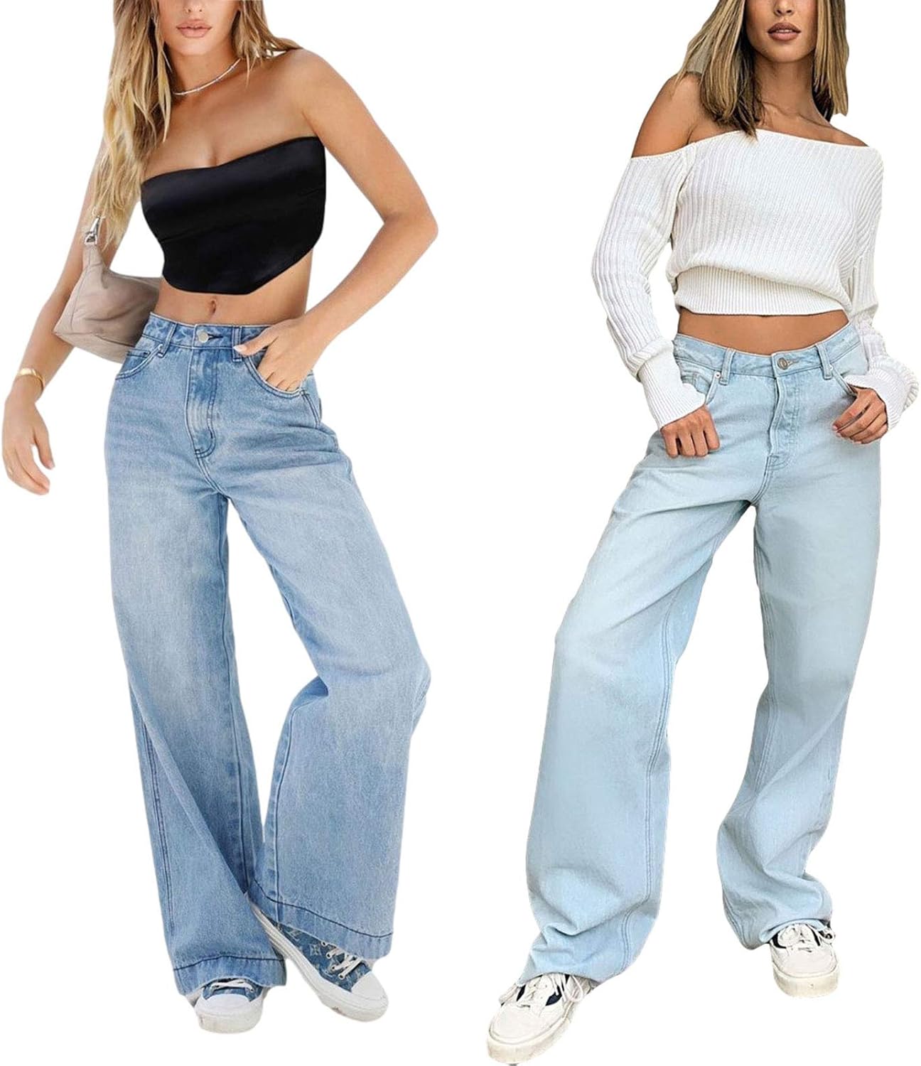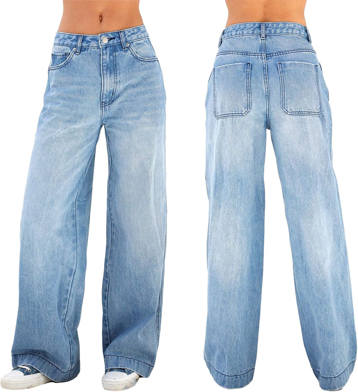Women’s Wide Leg Boyfriend Jeans Straight Leg Denim Pants Low Rise Baggy Casual Loose Jeans