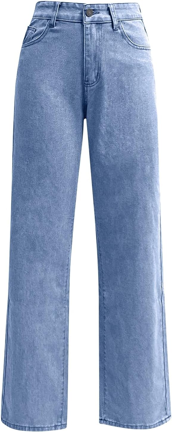 Womens Wide Leg Jeans High Waisted Baggy Boyfriend Jean Elastic Waist Stretchy Loose Curvy Denim Pants