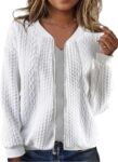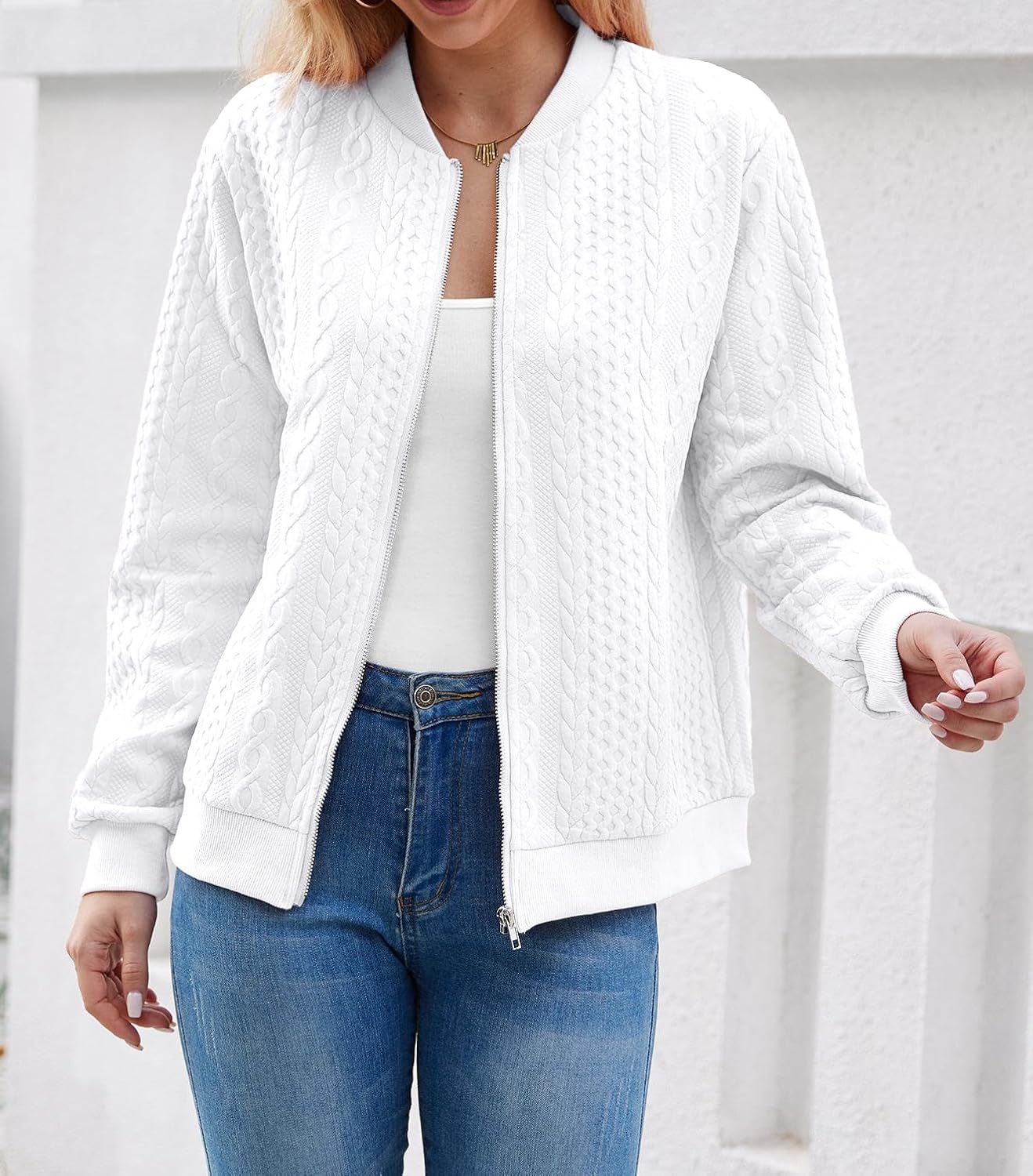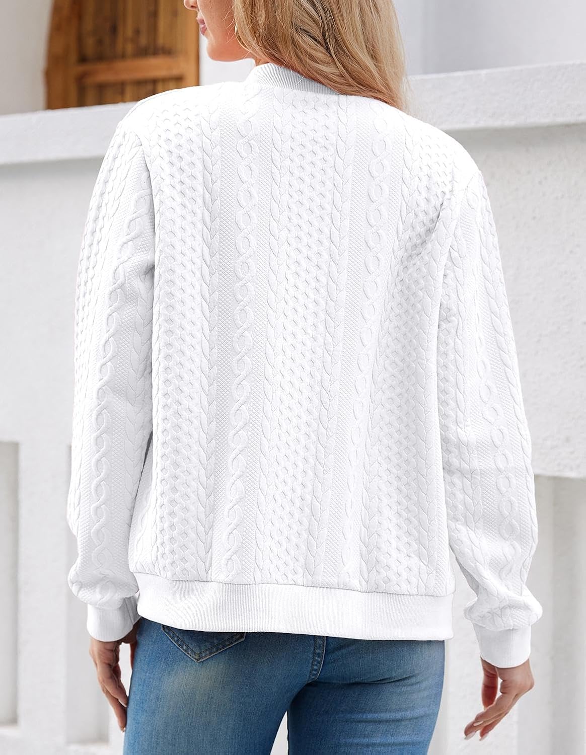 Women’s Zip Up Cardigan Sweater Cable Hoodies Long Sleeve Jacket Outfits Crewneck Casual Coat