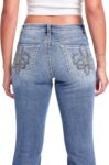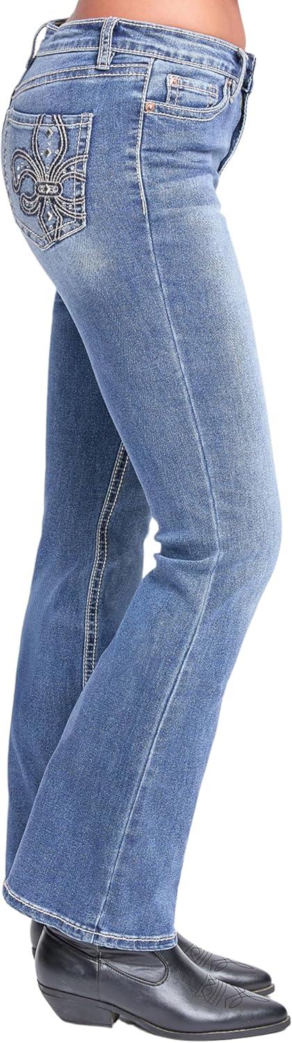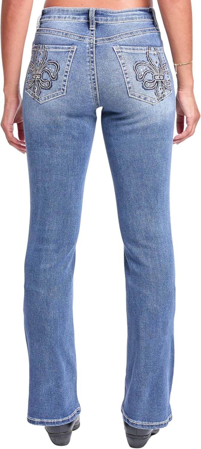 YMI Women’s Mid Rise Studded Fleur De Lis Bootcut Jeans