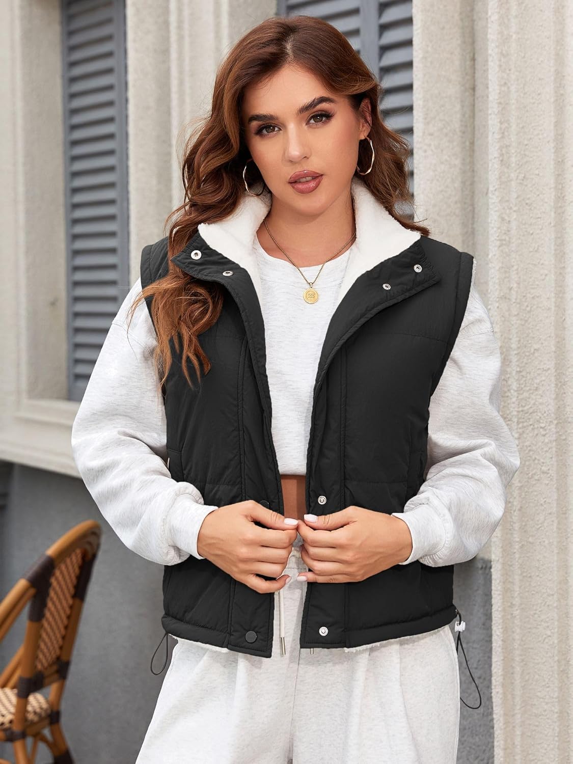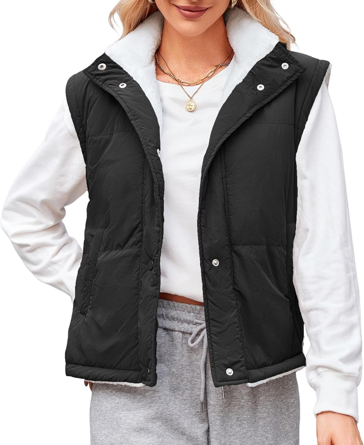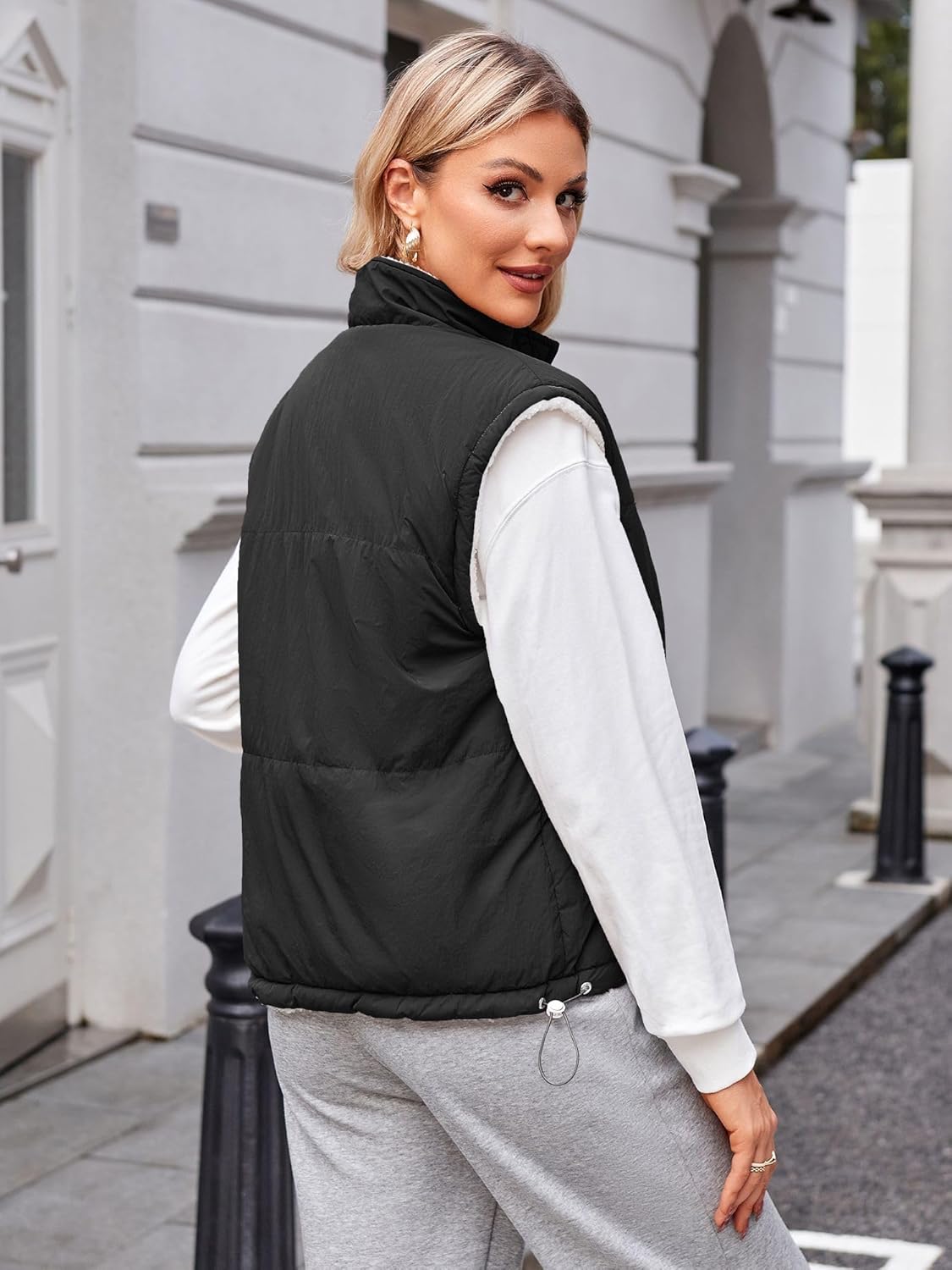 ZAFUL Womens 2024 Fall Cropped Puffer Vest Reversible Zip Up Quilted Vest Sleeveless Winter Fleece Jacket Outerwear