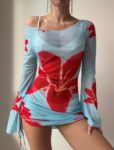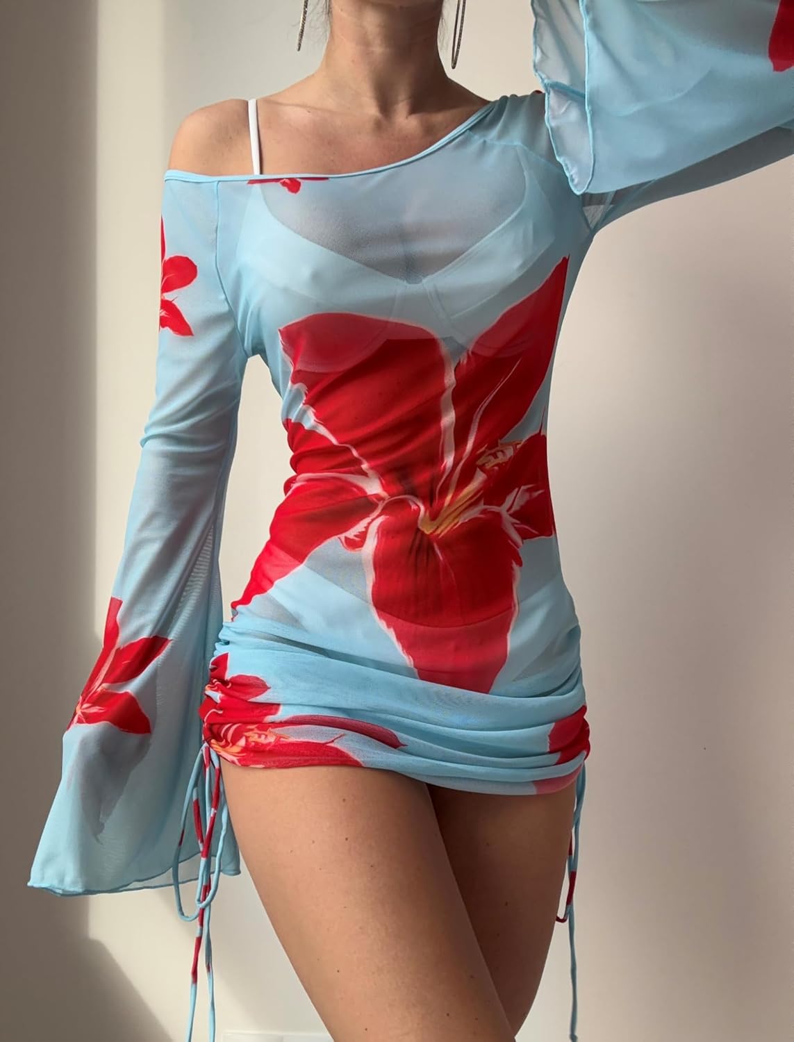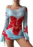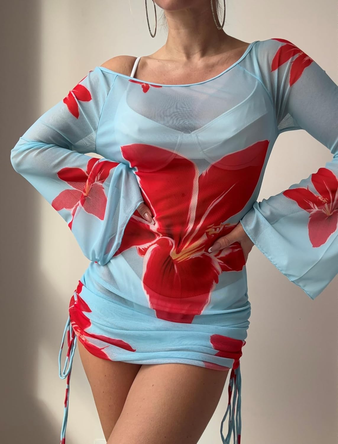 ZAFUL Womens Swimsuit Cover Up Dress Off Shoulder Hollow Coverup Bathing Suit Mesh Swim Beach Dress