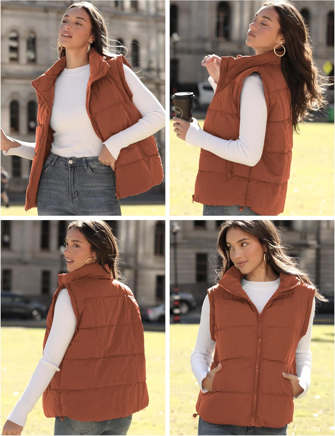 Zeagoo Puffer Vest Women Sleeveless Lightweight Quilted Jacket Stand Collar Zip Up Down with Pockets Winter Outerwear 2025