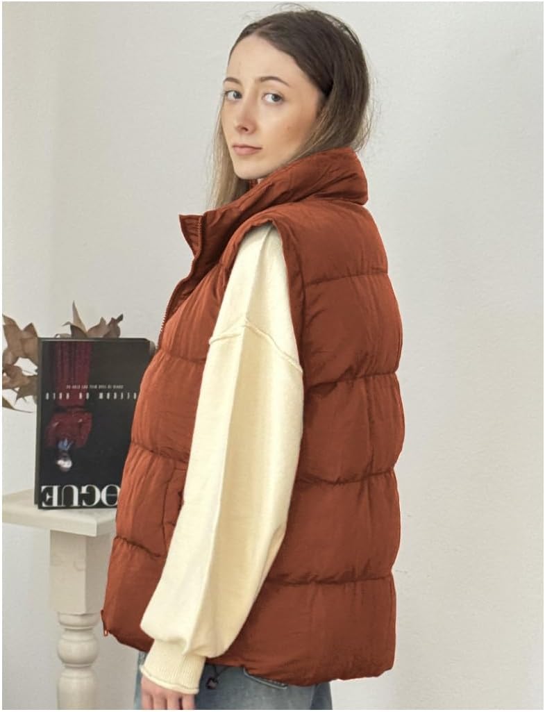 Zeagoo Womens Oversized Puffer Vest Stand Collar Full Zip Sleeveless Bubble Puffer Vest Quilted Padded Warm Coat Outwear