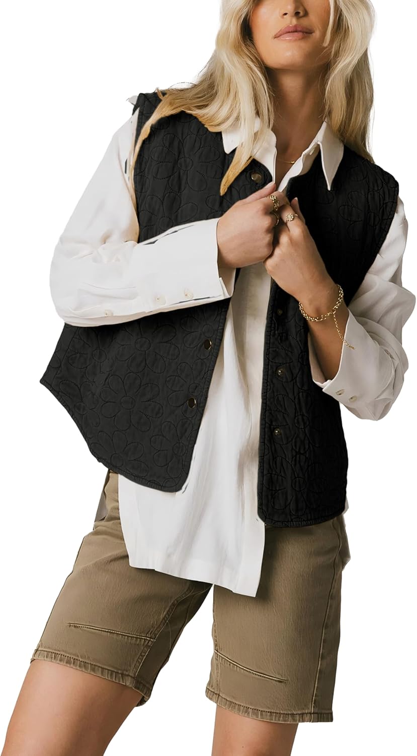 Zeagoo Puffer Vest Women Sleeveless Quilted Jacket Lightweight Snap Zip Up Stand-up Collar Down with Pockets Outerwear