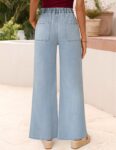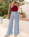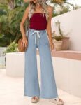 ZESICA Womens Drawstring High Waist Jeans Loose Fit Wide Leg Straight Baggy Trendy Denim Pants with Pockets